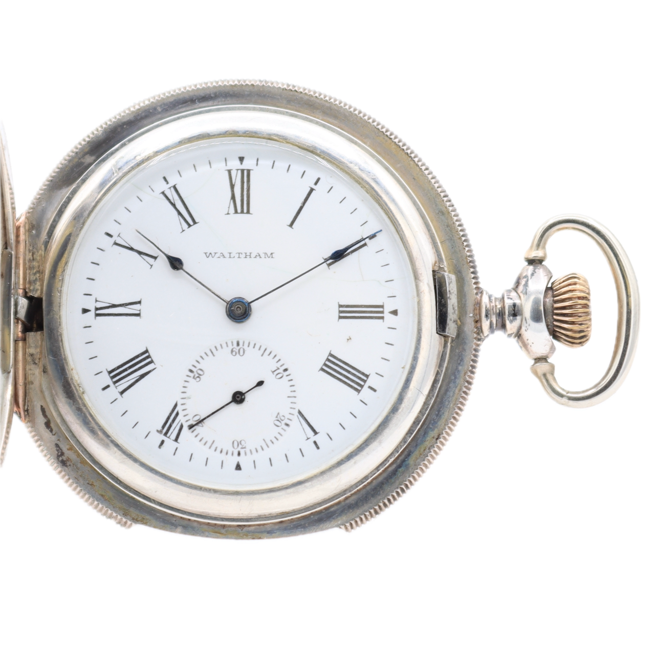 Antique 6s Waltham Mechanical Hunter Pocket Watch Lady Waltham Sterling Silver