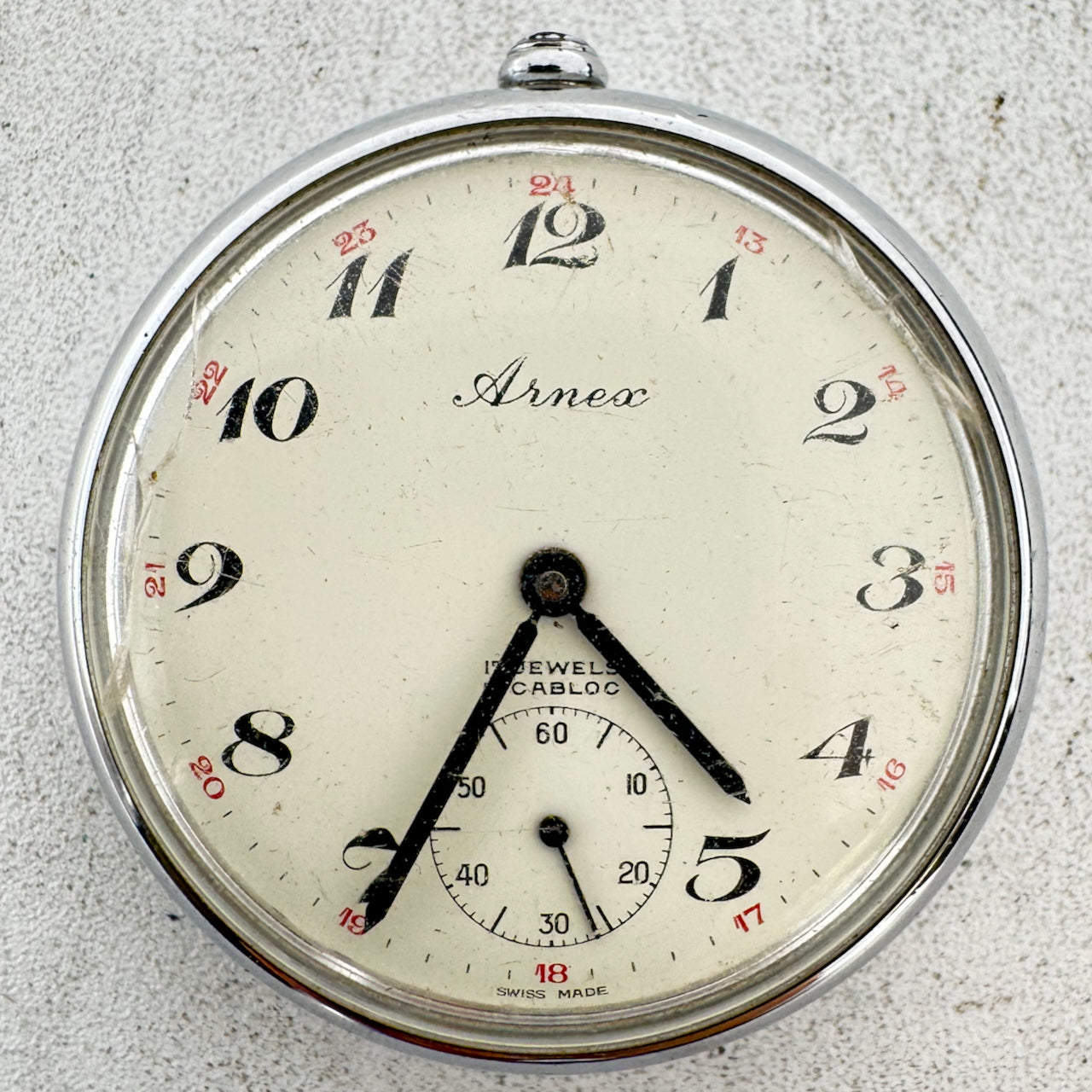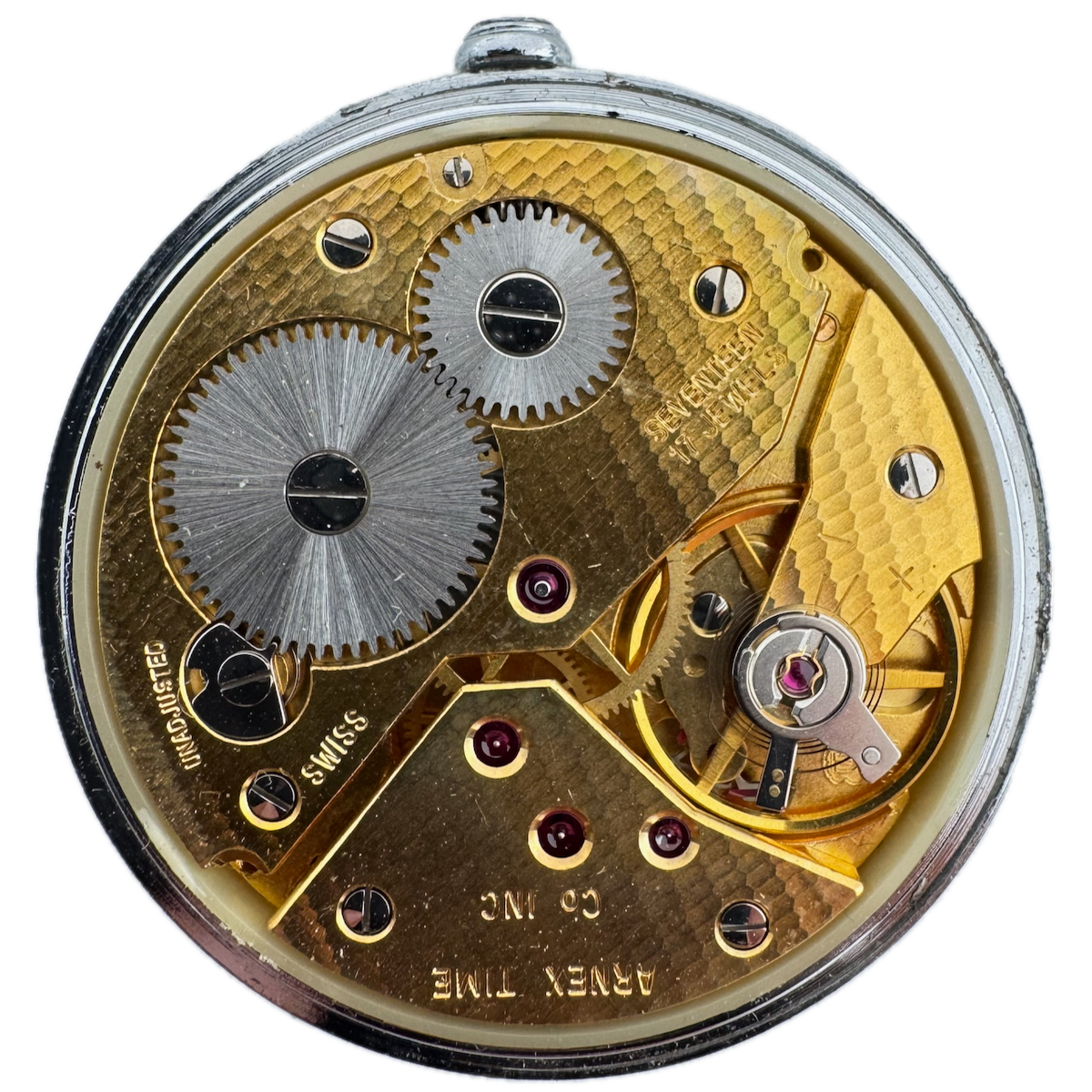 Antique Arnex 17 Jewel Mechanical Pocket Watch 6497 Chrome Plated Swiss
