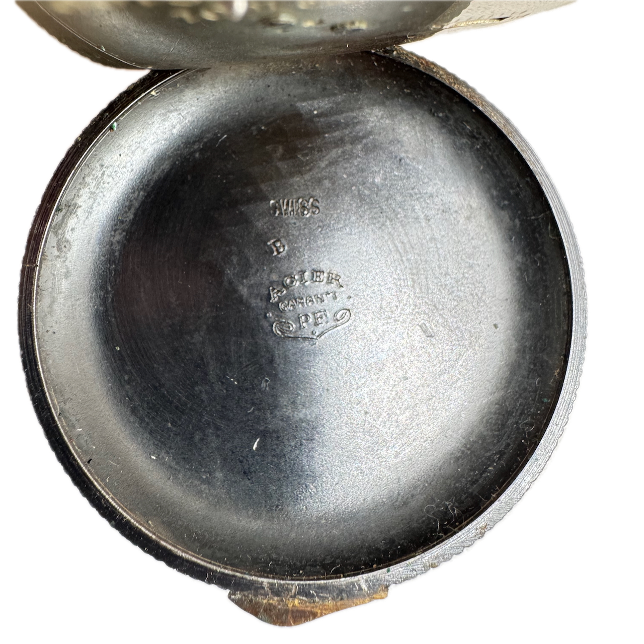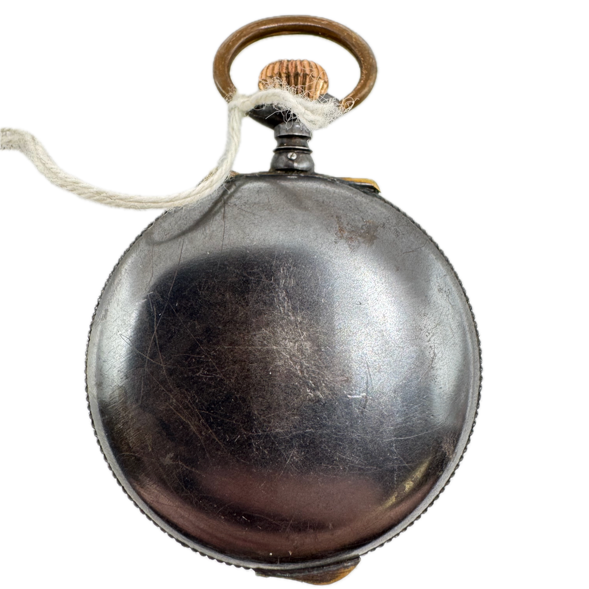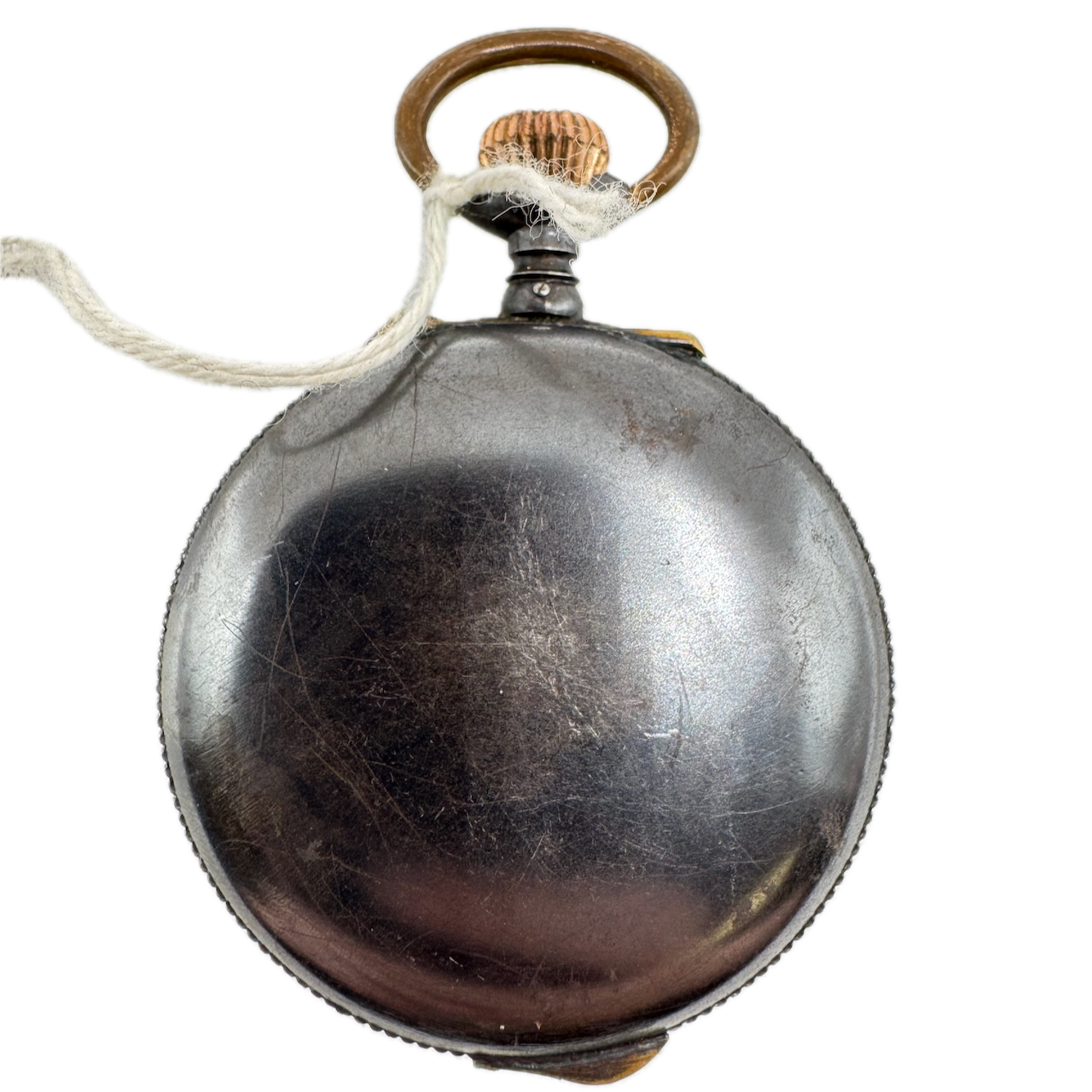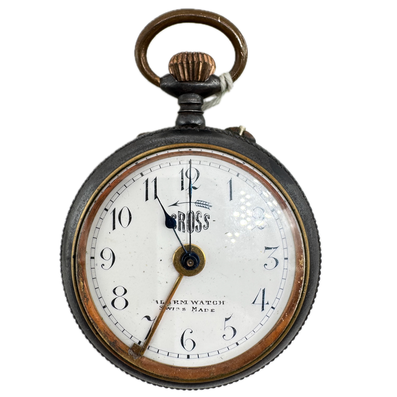 Antique Cross Alarm Mechanical Open Face Pocket Watch Gunmetal Swiss Made