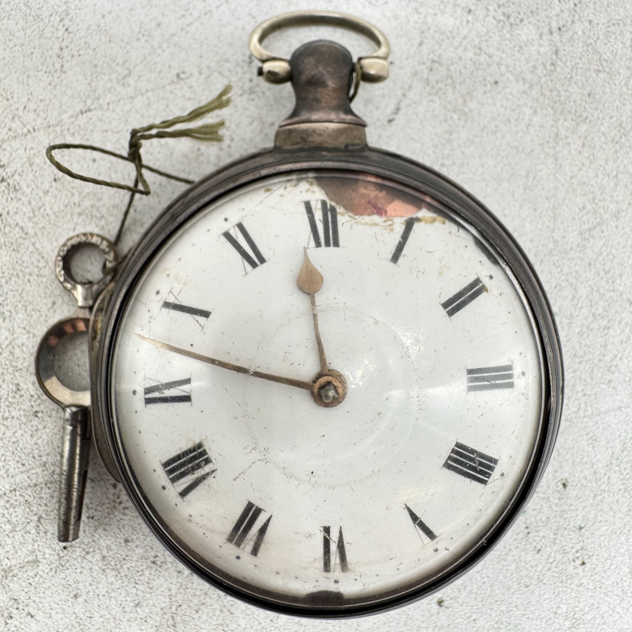 Antique M. Clandon Pair Case Dome Key Wind Fusee Pocket Watch .800 Silver