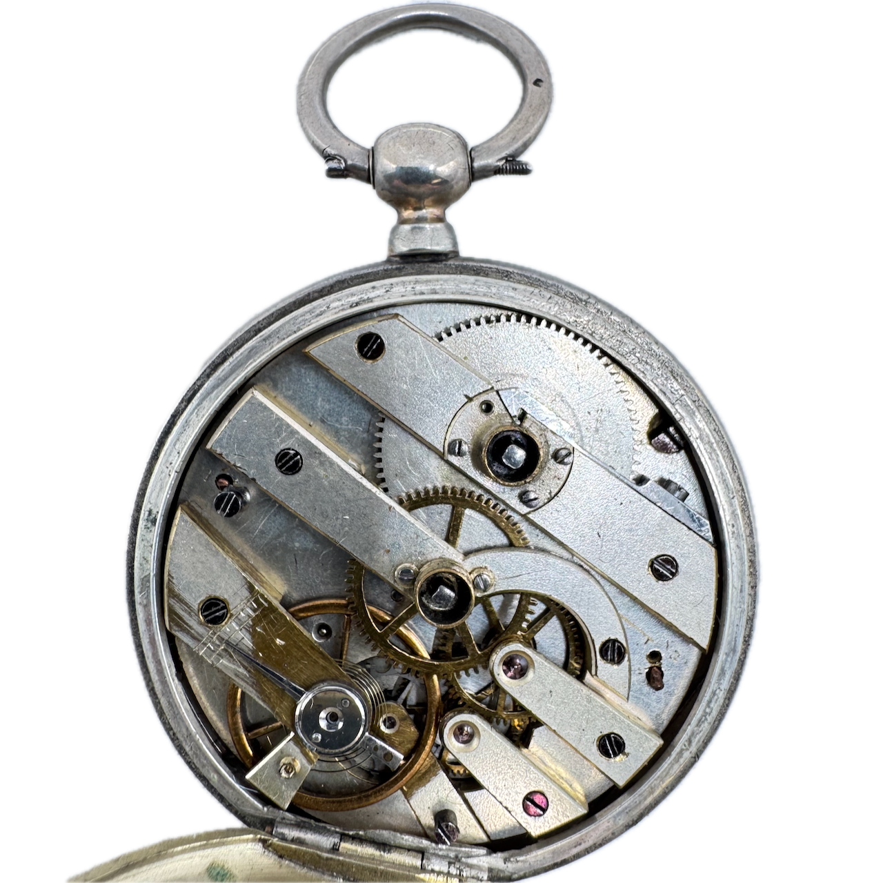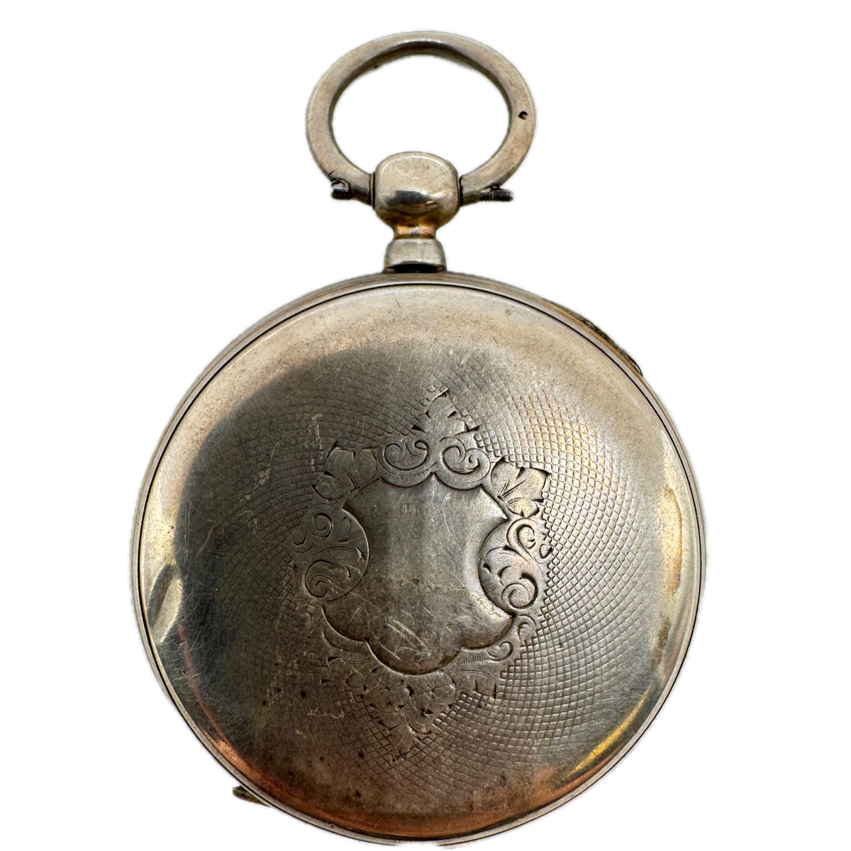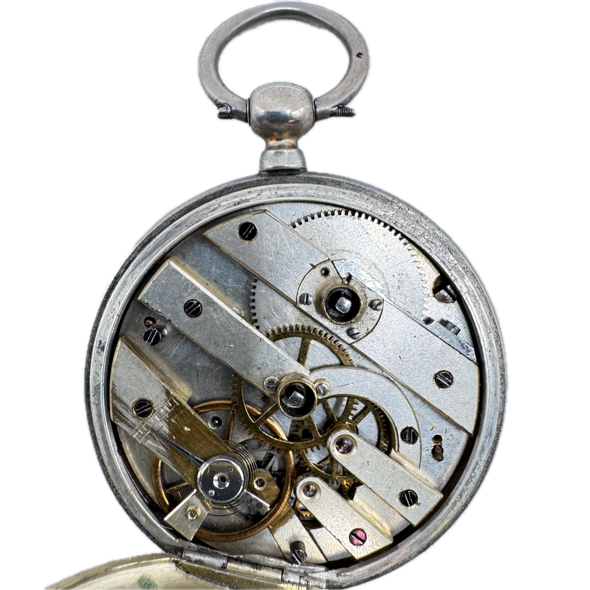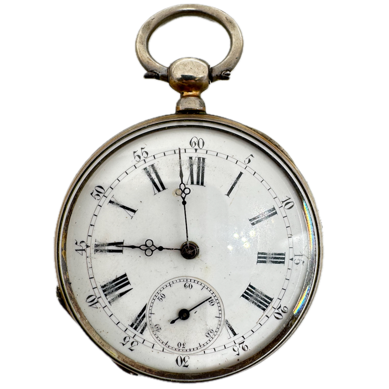 Antique Unbranded Shield Key Wind Cylinder Escapement Pocket Watch .800 Silver