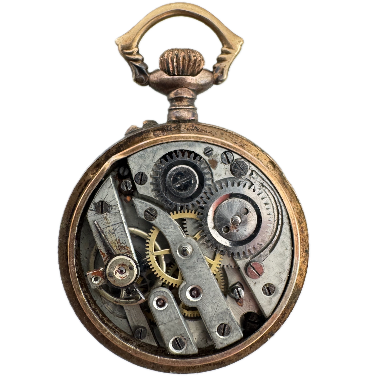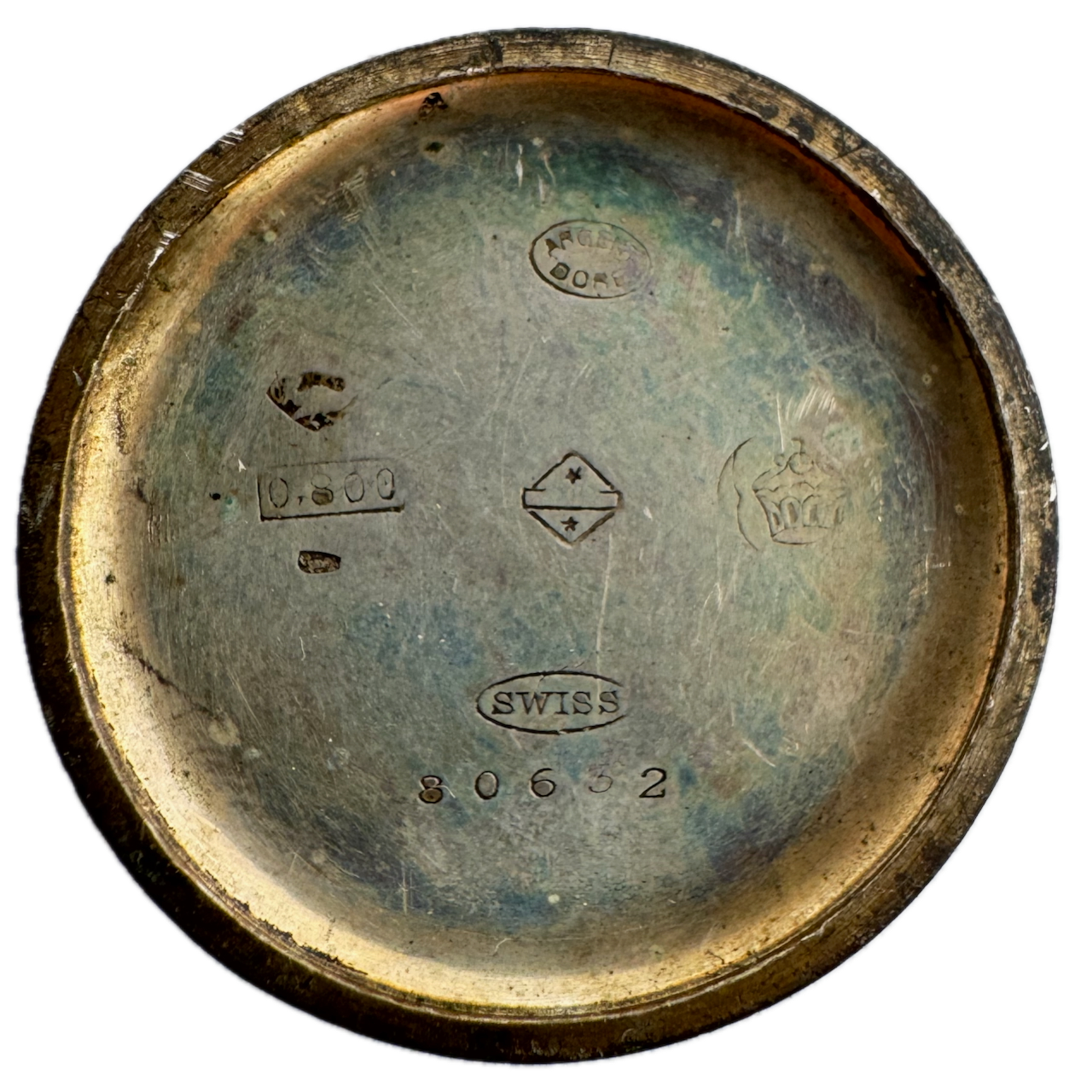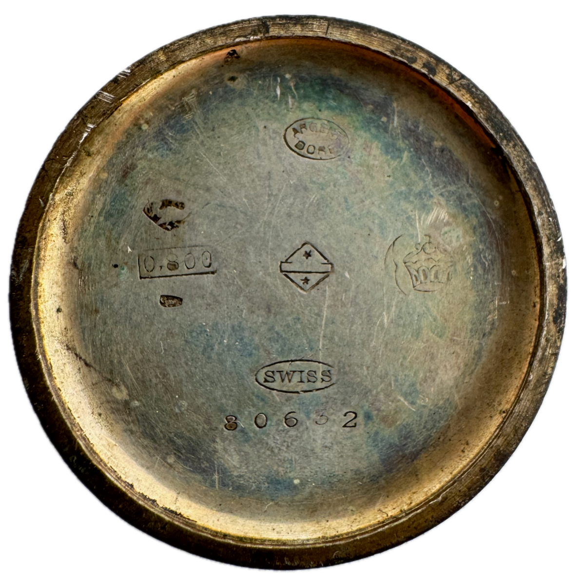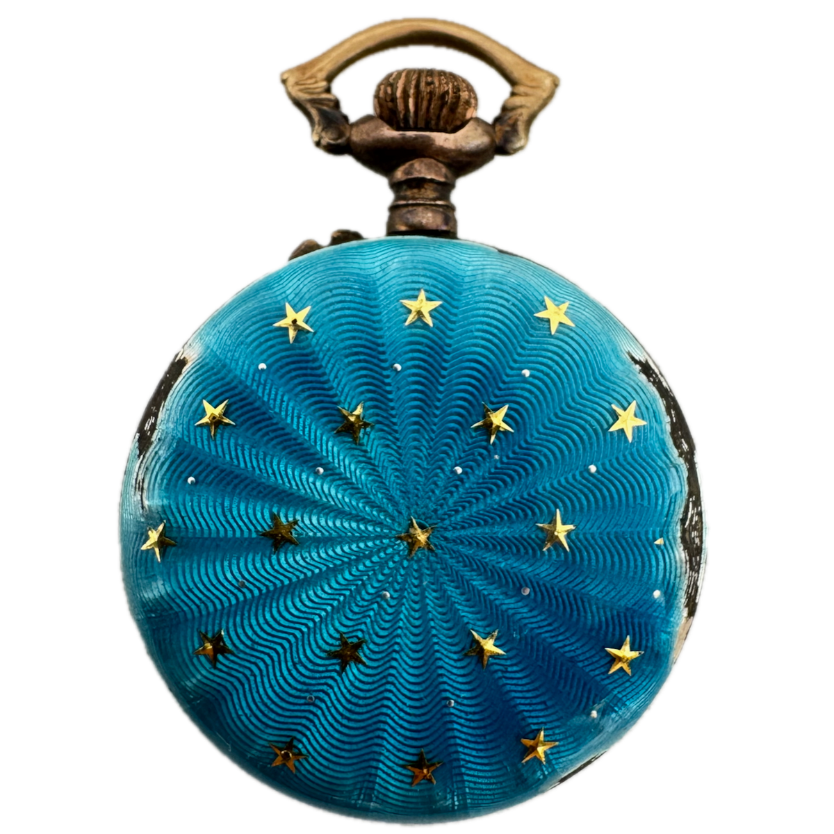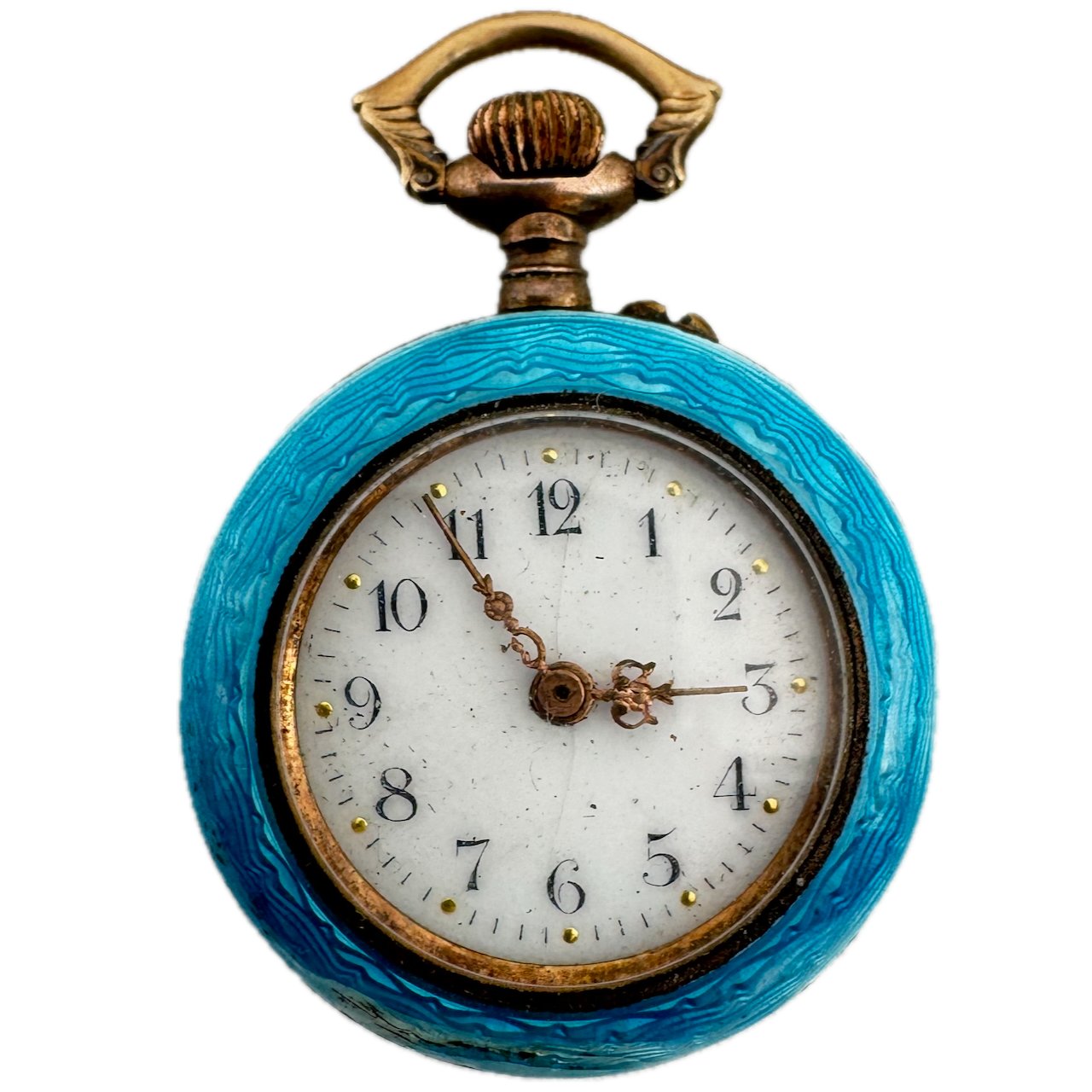 Antique Unsigned Enamel Guilloche Mechanical Pocket Watch .800 Silver