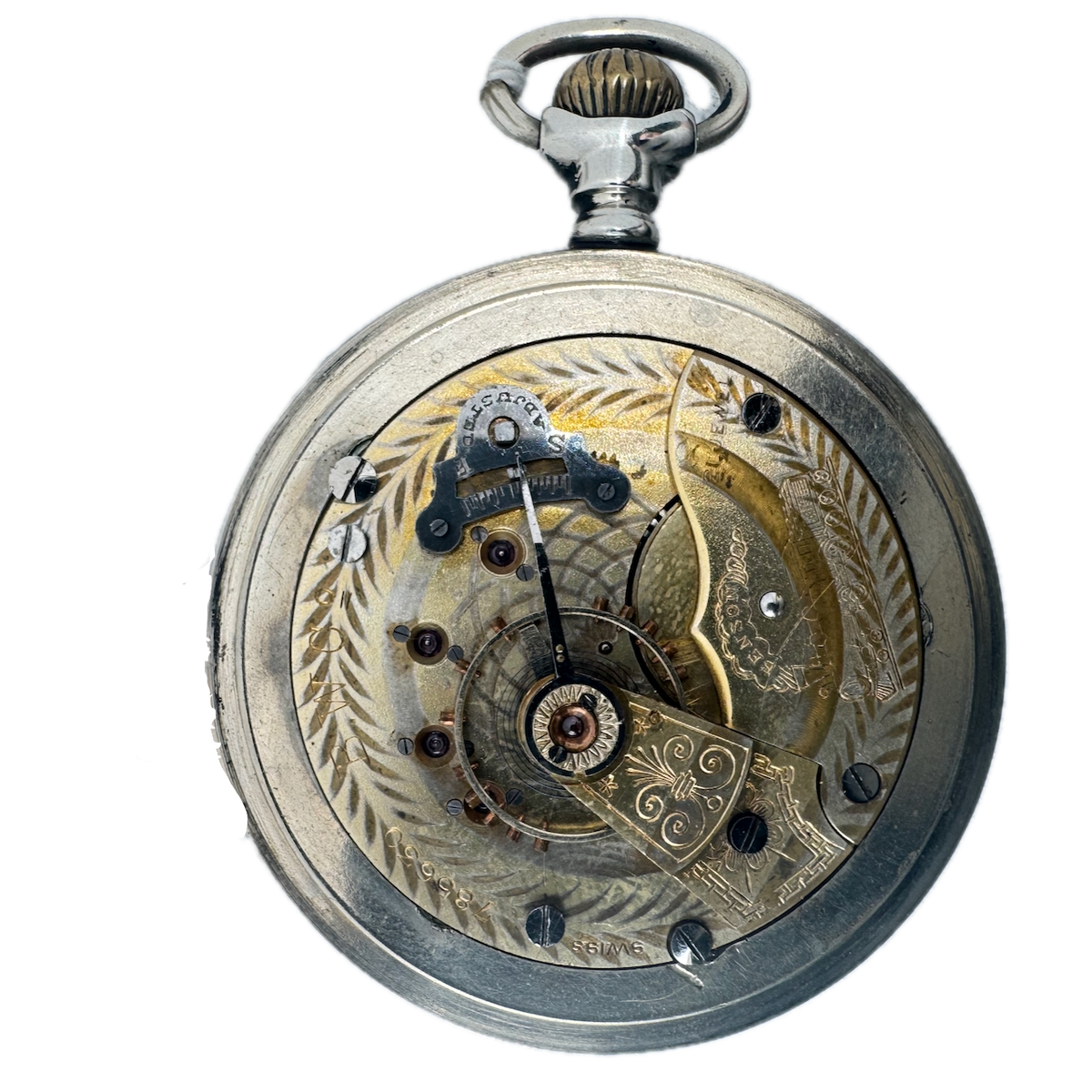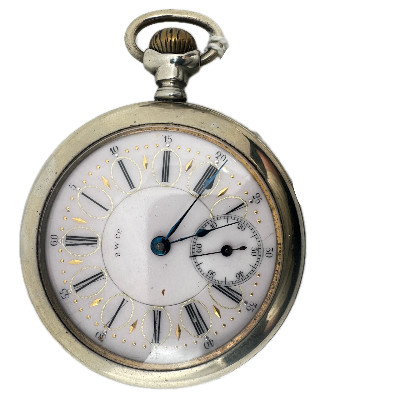AntiqueB.W. Co. Multicolor 21 J Mechanical Hunter Pocket Watch Benson Nickel