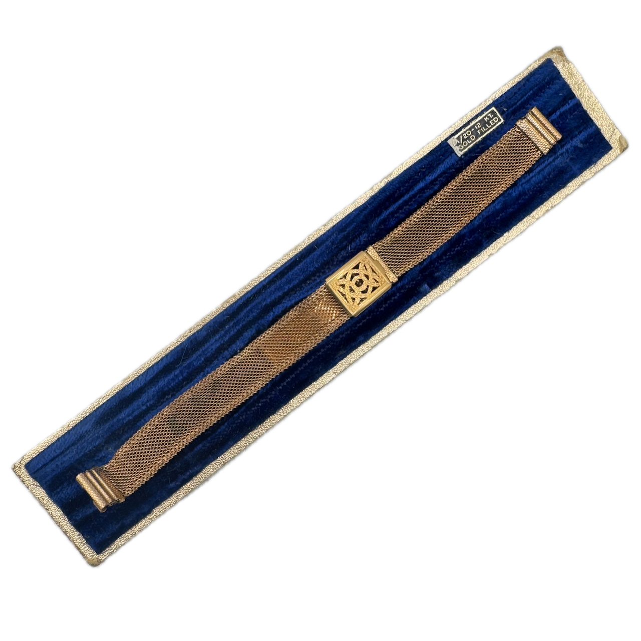 Antique 10mm Lustern Ladies Wristwatch Band 12k Gold Filled Mesh Filigree USA