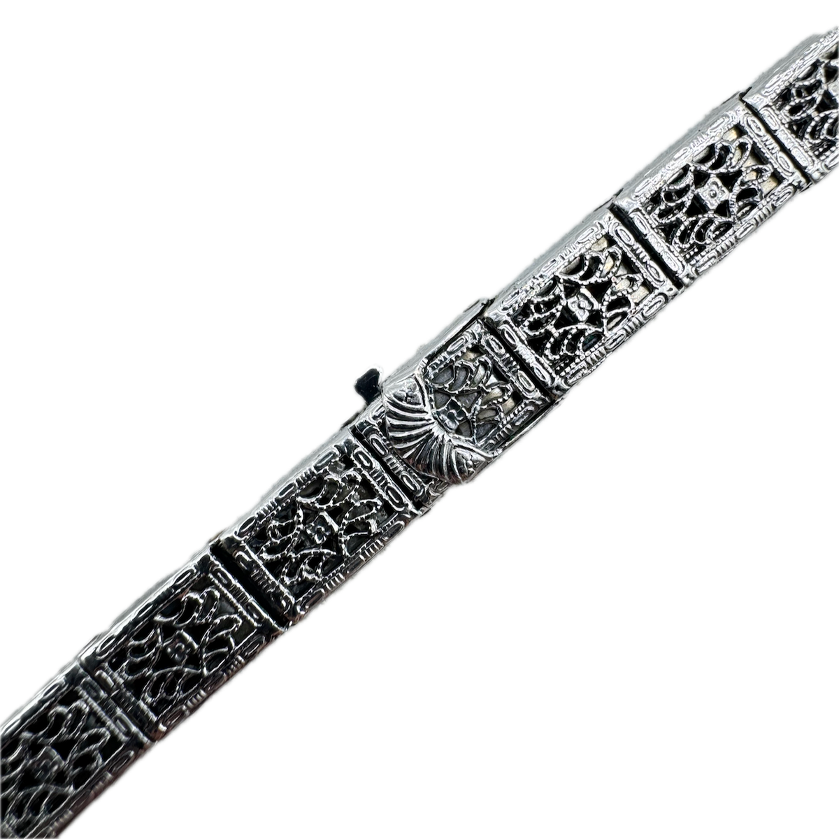 Vintage 10mm Nuwite Ladies Wristwatch Band White Gold FIlled Filgree Stretch