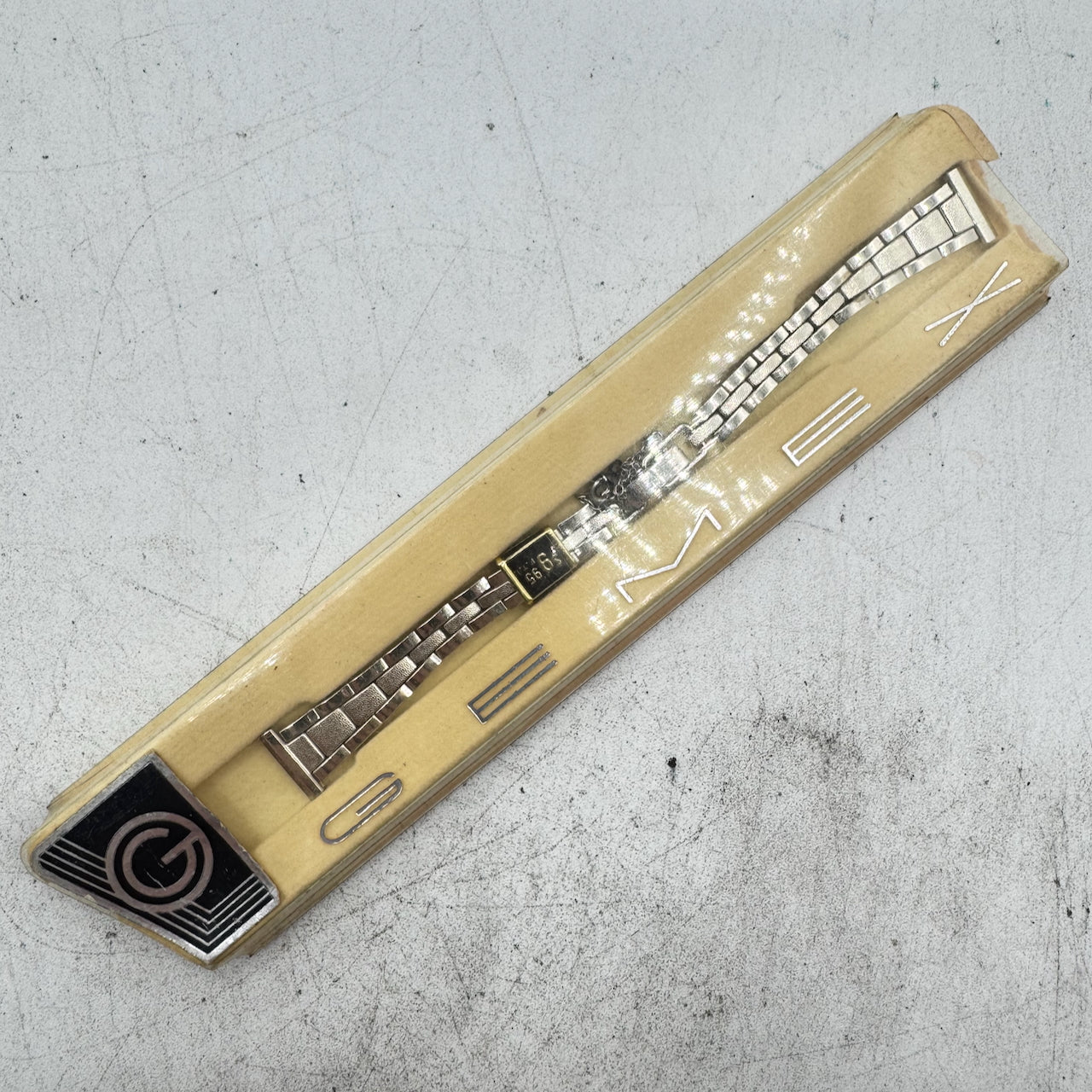 Vintage 12.5mm Gemex Men's Wristwatch Bracelet 10k White GF Hammered Style NOS