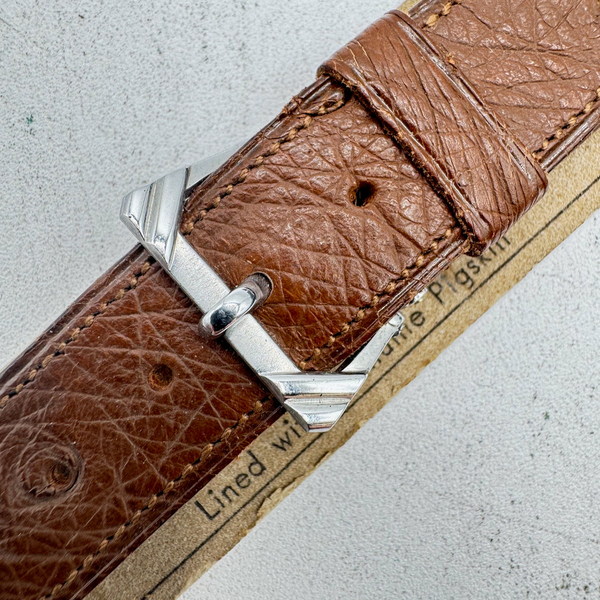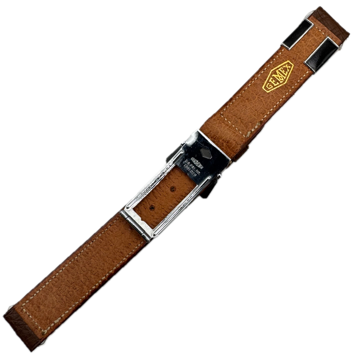 Vintage 15.5mm Gemex Men's Wristwatch Band Ostrich Leather Deployant Two Piece
