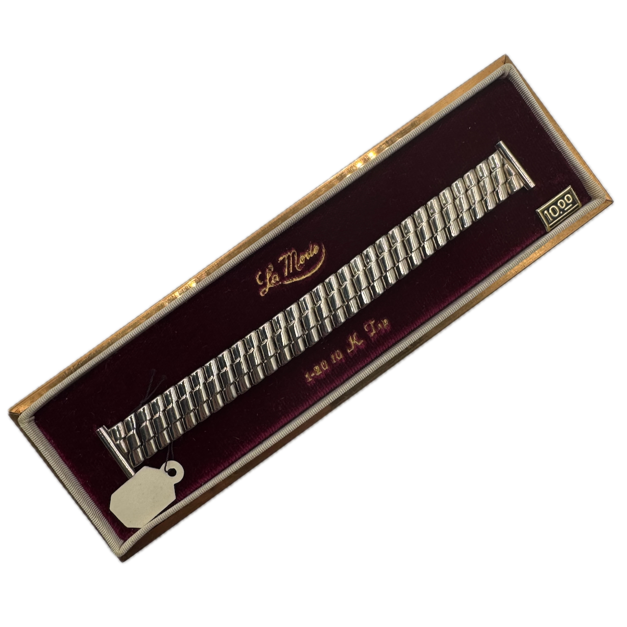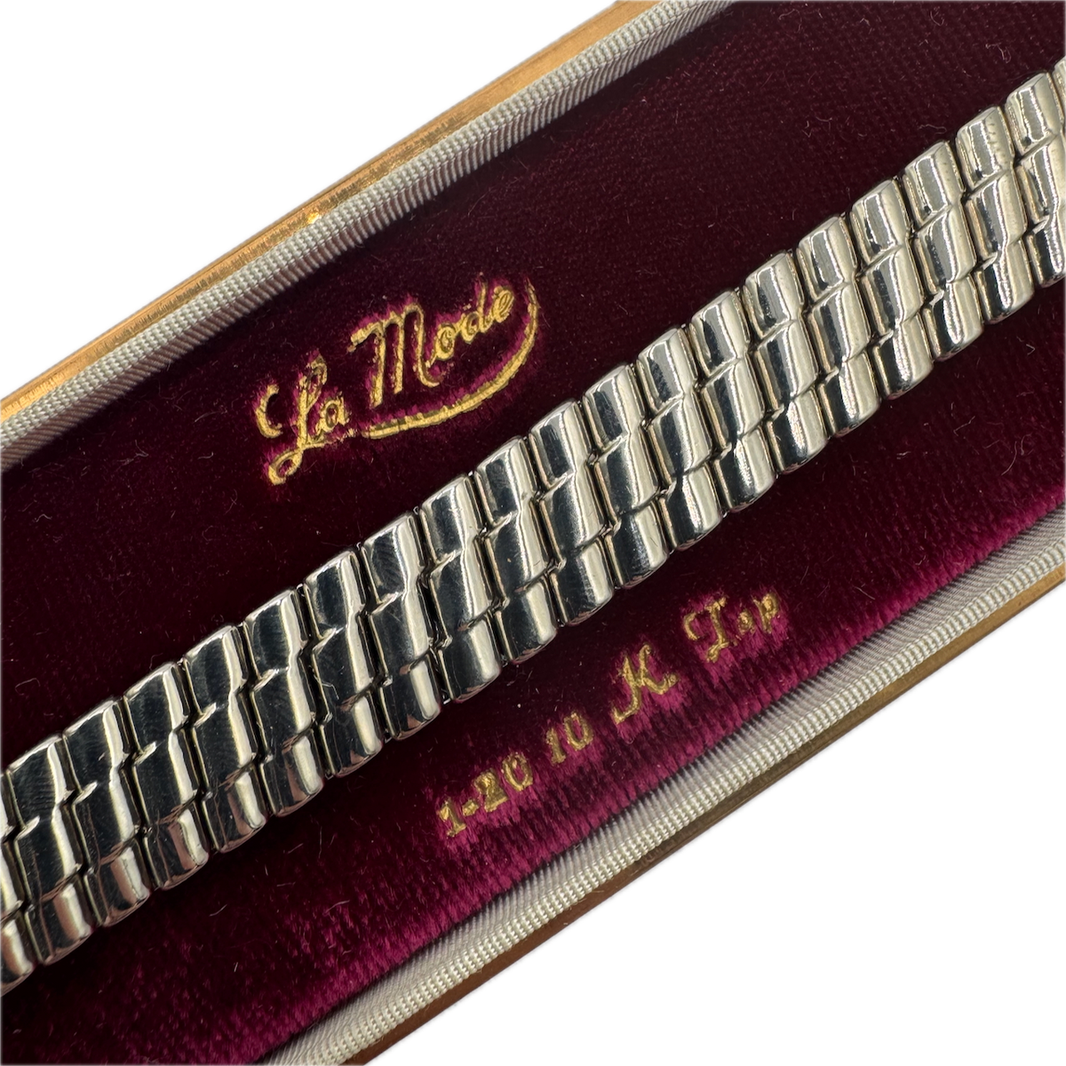 Vintage 17mm La Mode Men's Wristwatch Bracelet 10k White GF Stretch USA NOS