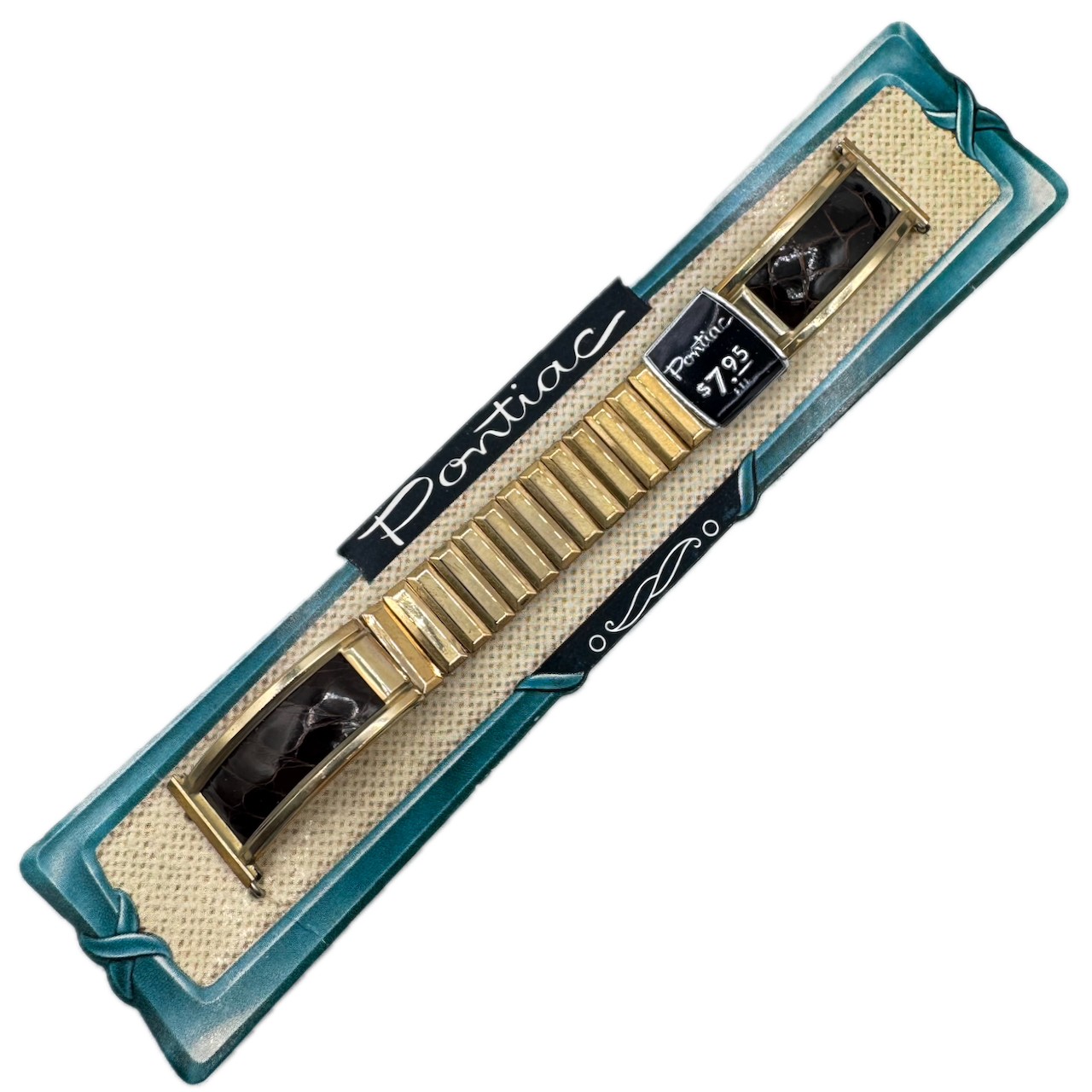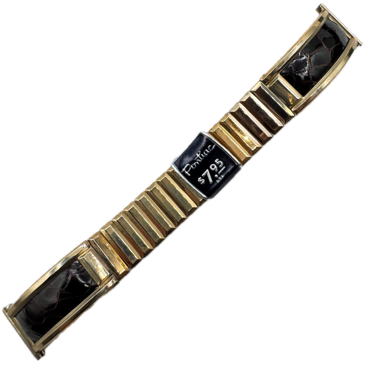 Vintage 18.5mm Pontiac Men's Wristwatch Band Steel & Gold FilledStretch Leather
