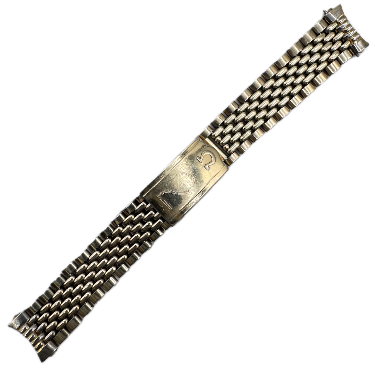 Vintage 18mm Omega Men's Wristwatch Band Steel & Gold Plate Beads of Rice USA