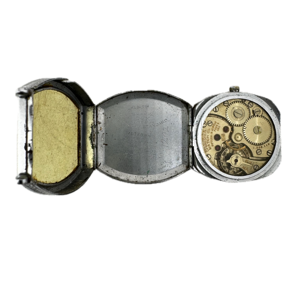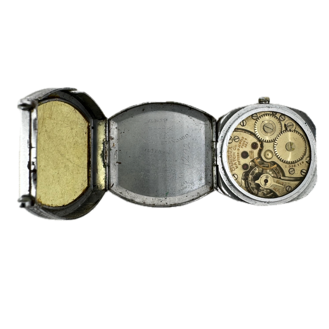 Vintage 28mm Bulova Fold Case 15j Men's Mechanical Wristwatch 10AP USA 14k RGP