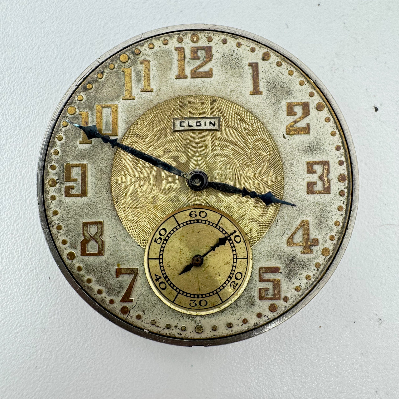 Ok, overall condition for its age. Running, but we dont know the last time it was serviced. This means, it can run unreliably, start or stop and timekeeping is not guaranteed. The dial has scratches and discoloration. The hands have some light surface rust.