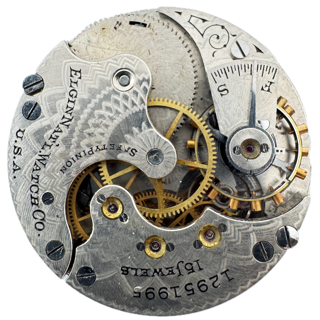 Antique 6s 1907 Elgin 15 Jewel Mechanical Hunter Pocket Watch Movement 295 USA