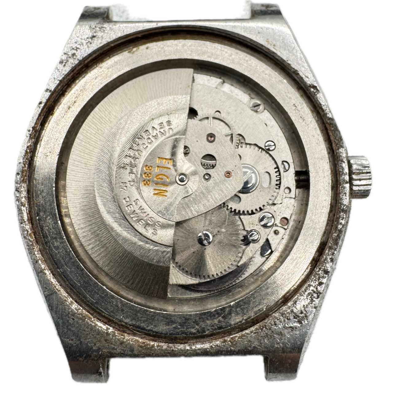 About the brand: First founded in 1864 as the National Watch Company, Elgin watches were produced out of Elgin, Illinois at the world's largest dedicated watch production facility of the time. By 1910 - Elgin had built an observatory to help with the accuracy of their timepieces. Like most watch manufacturers, Elgin moved to defense production during the second World War and produced military issue watches such as the well known Elgin A-11. After the war, production of Elgin watches slowed and they transferred production to South Carolina. As the influx of Swiss watches came into the market, the Elgin brand sold its entities in 1968, and the name rights of the company were subsequently re-sold in the following years. Although the Elgin National Watch Company no longer exists, their impact on American watch making is seen through their large catalog of excellent vintage watches.