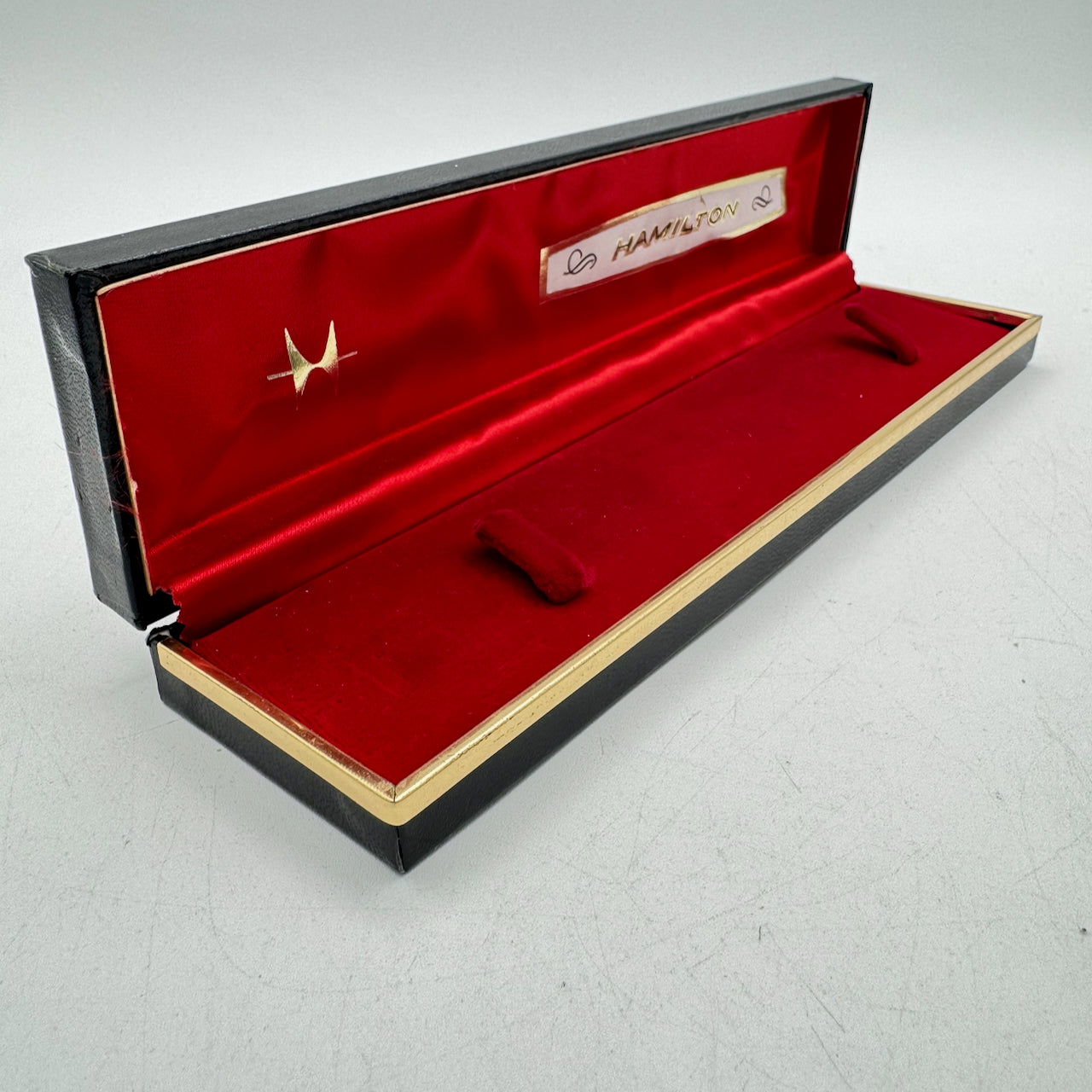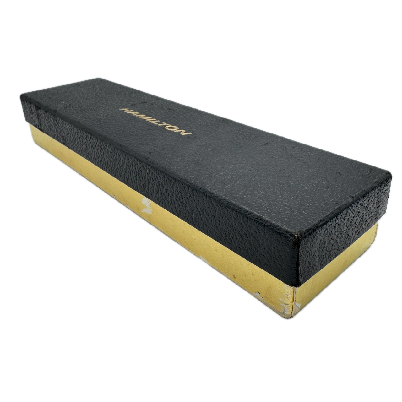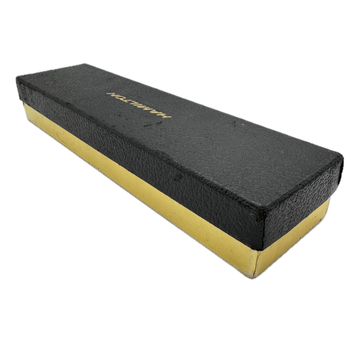 Vintage Hamilton Black & Gold Men's Wristwatch Box USA Felt & Leather Long