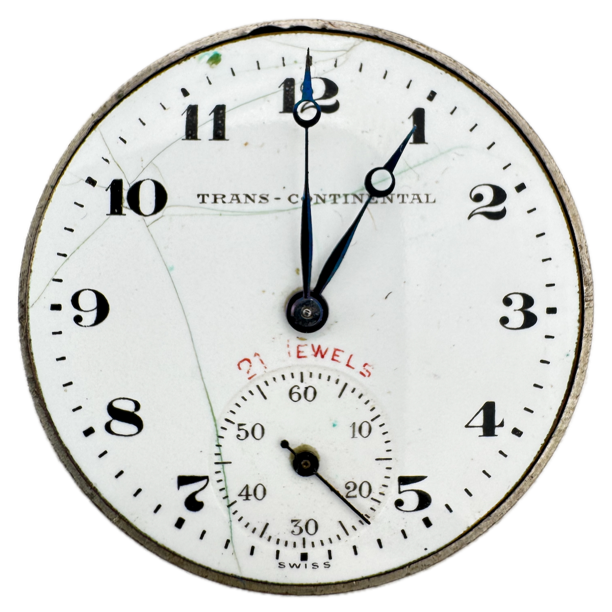 Antique 12s Trans-Continental Mechanical Open Face Pocket Watch Movement Swiss