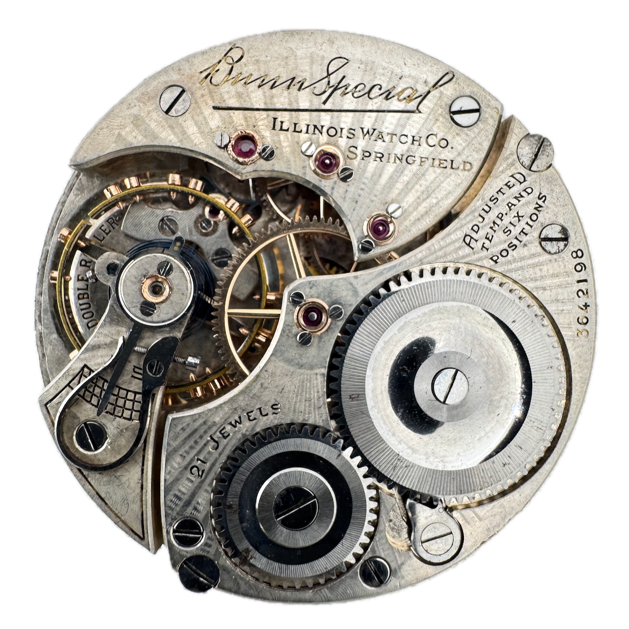 Antique 16s 1920 Illinois 21j Railroad Pocket Watch Movement Bunn Special USA
