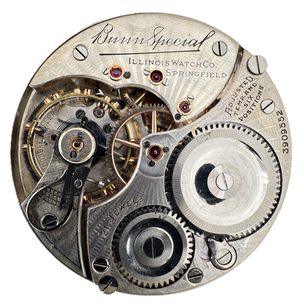 Antique 16s 1921 Illinois 21j Railroad Pocket Watch Movement Bunn Special USA