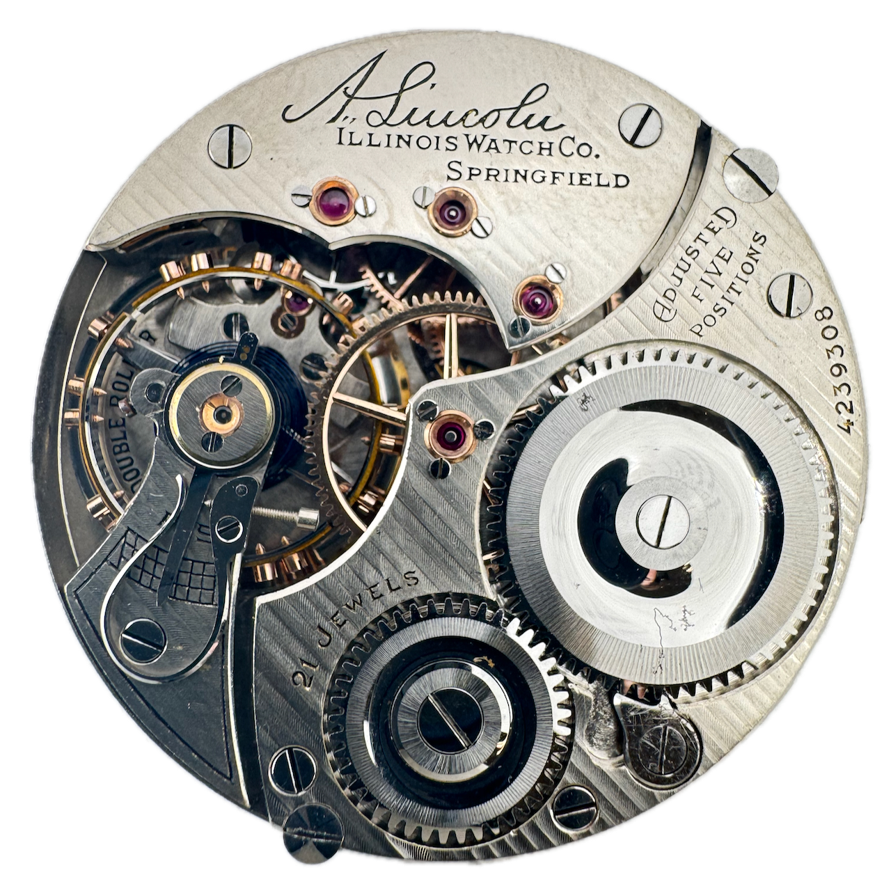 Antique 16s 1923 Illinois A. Lincoln 21j Railroad Pocket Watch Movement USA
