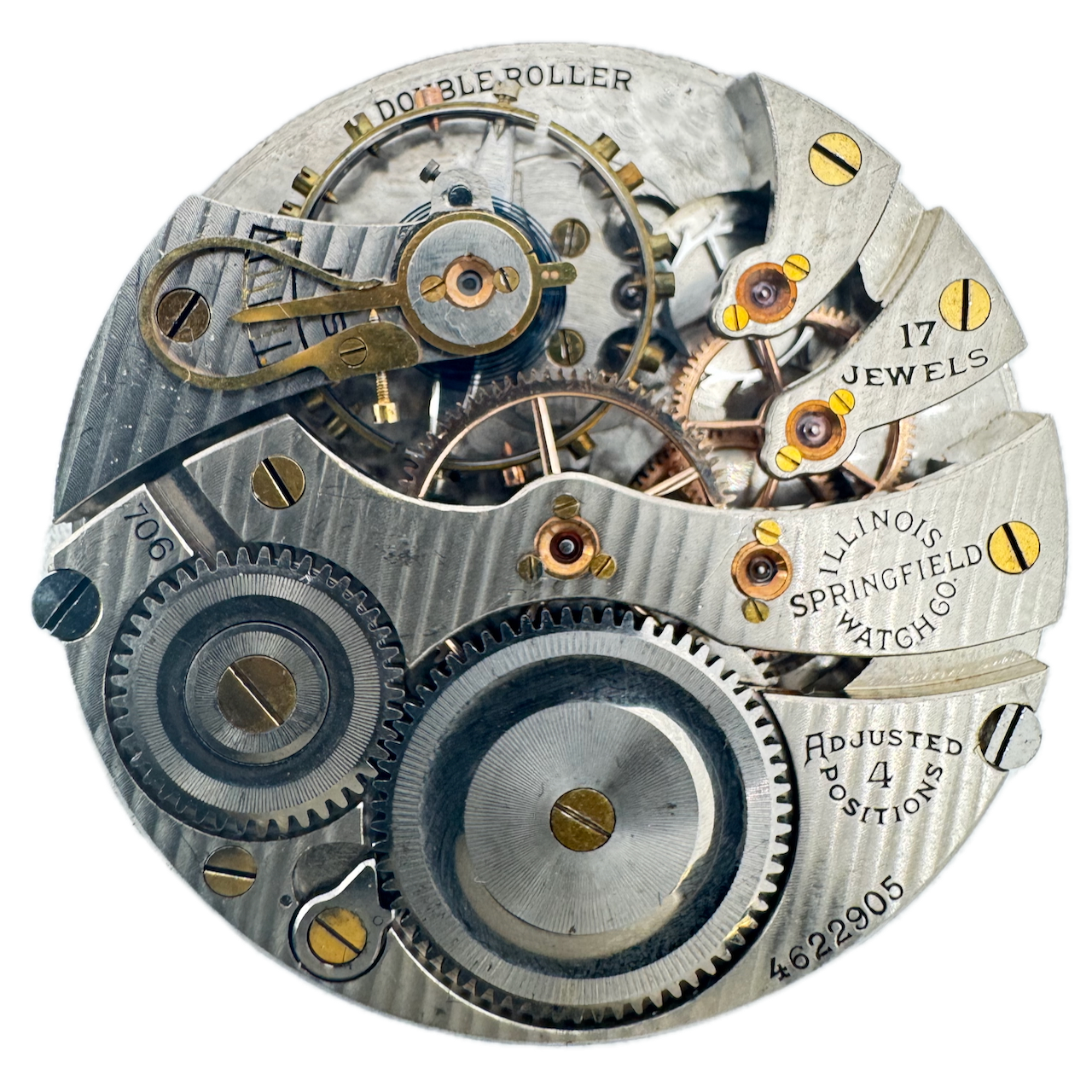 Antique 16s 1925 Illinois 17j Mechanical Pocket Watch Movement 706 USA Runs