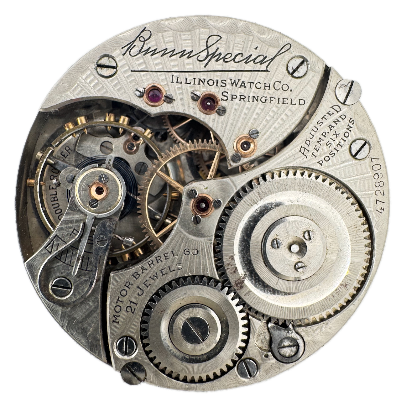 Antique 16s 1926 Illinois 21j Railroad Pocket Watch Movement Bunn Special USA