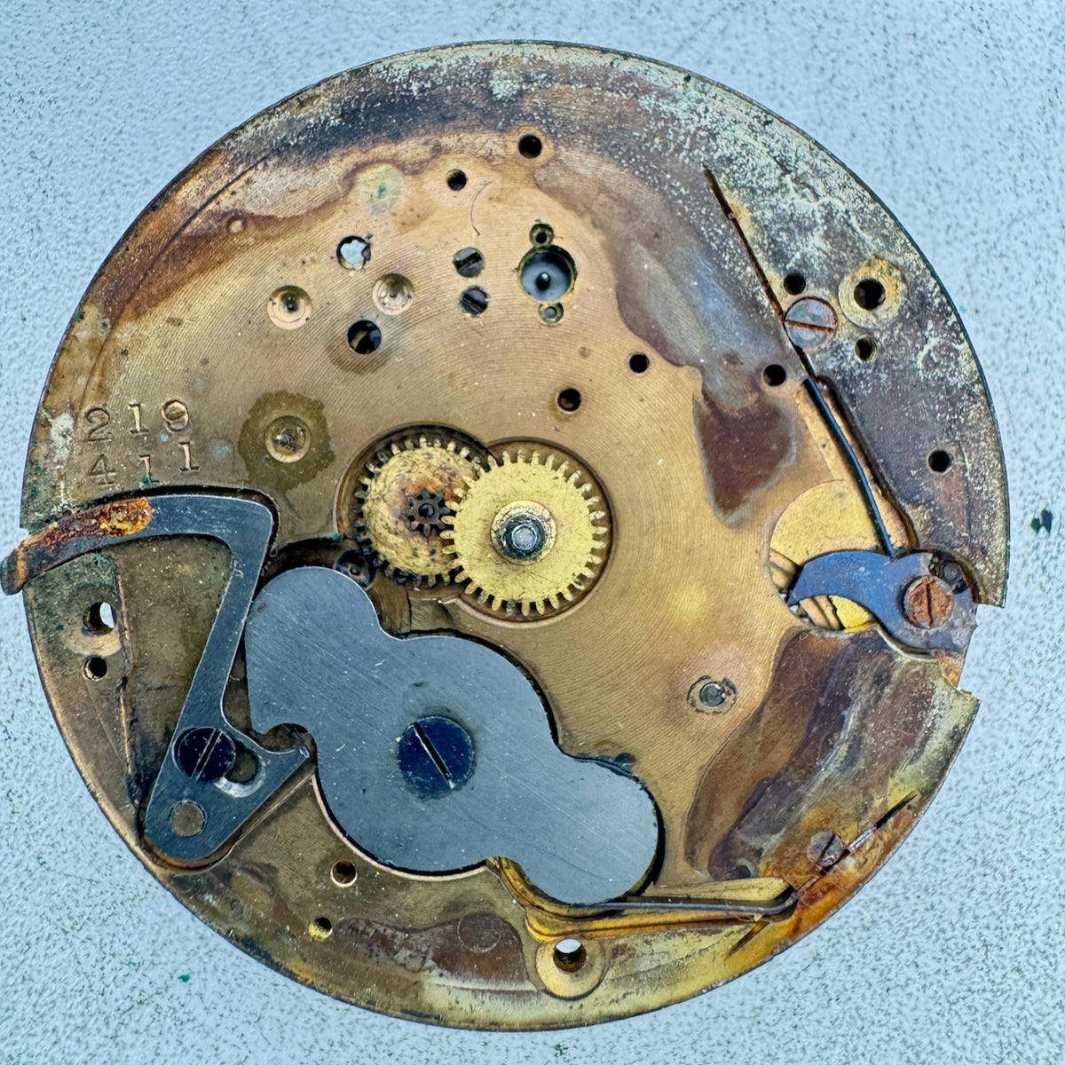 • Hands: It is missing minute and second hand. There is discoloration on the hands.