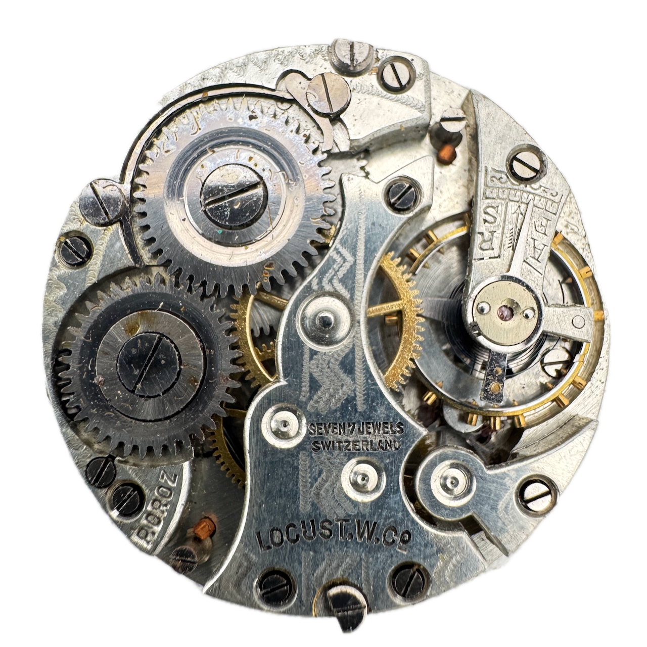 Antique 29mm Locust 7 Jewel Mechanical Hunter Pocket Watch Movement Swiss