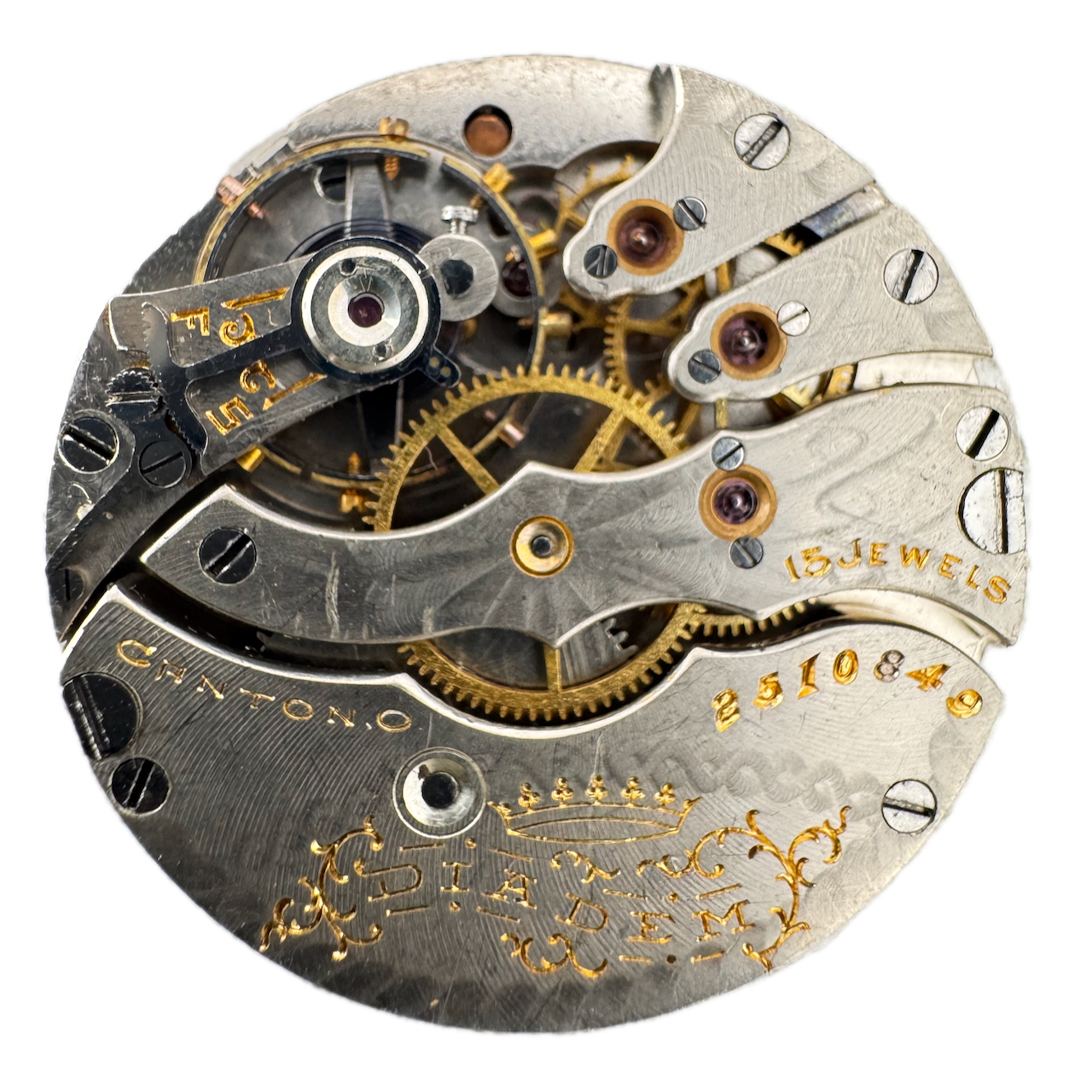 Antique 3/0s 1908 Hampden 15j Mechanical Hunter Pocket Watch Movement Diadem