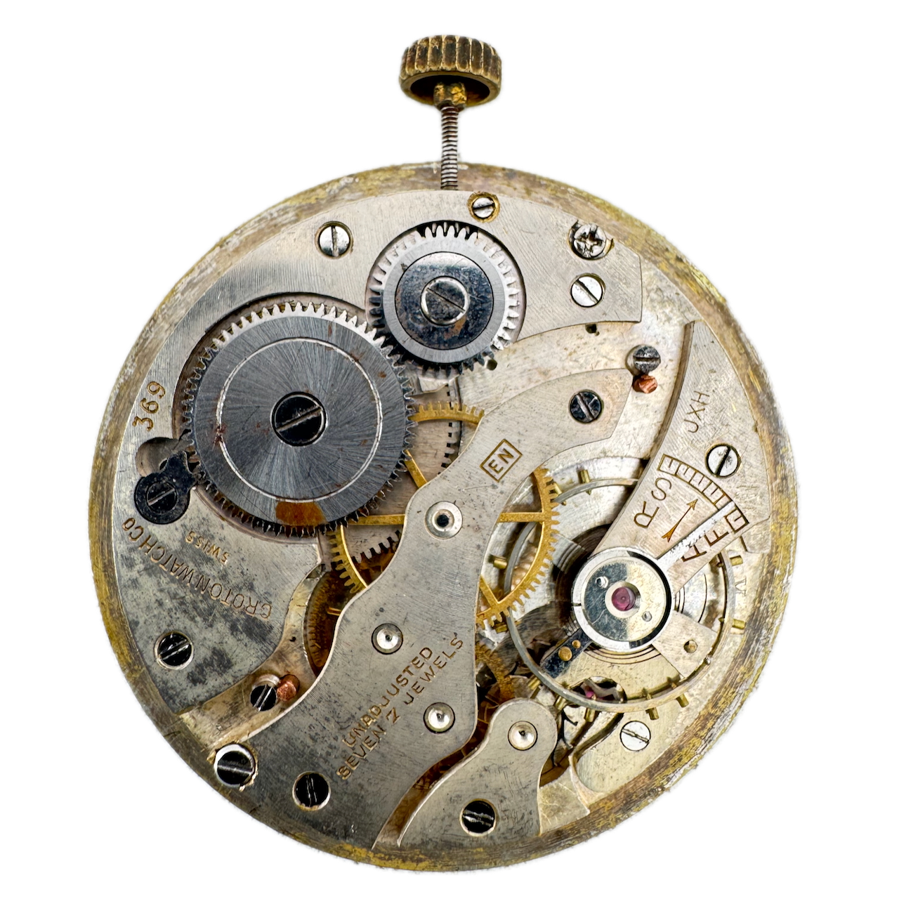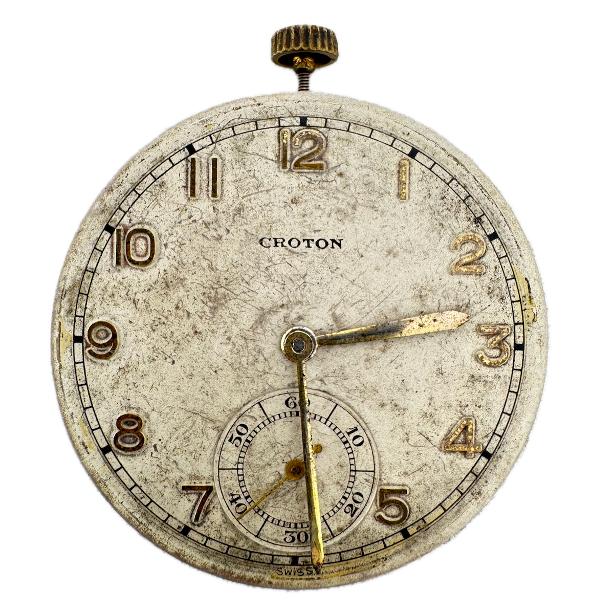 Antique 36mm Croton 7 Jewel Mechanical Pocket Watch Movement 369 Swiss