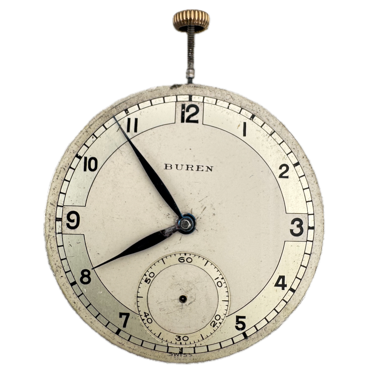 Antique 40mm Buren Grand Prix 17 Jewel Mechanical Pocket Watch Movement Swiss