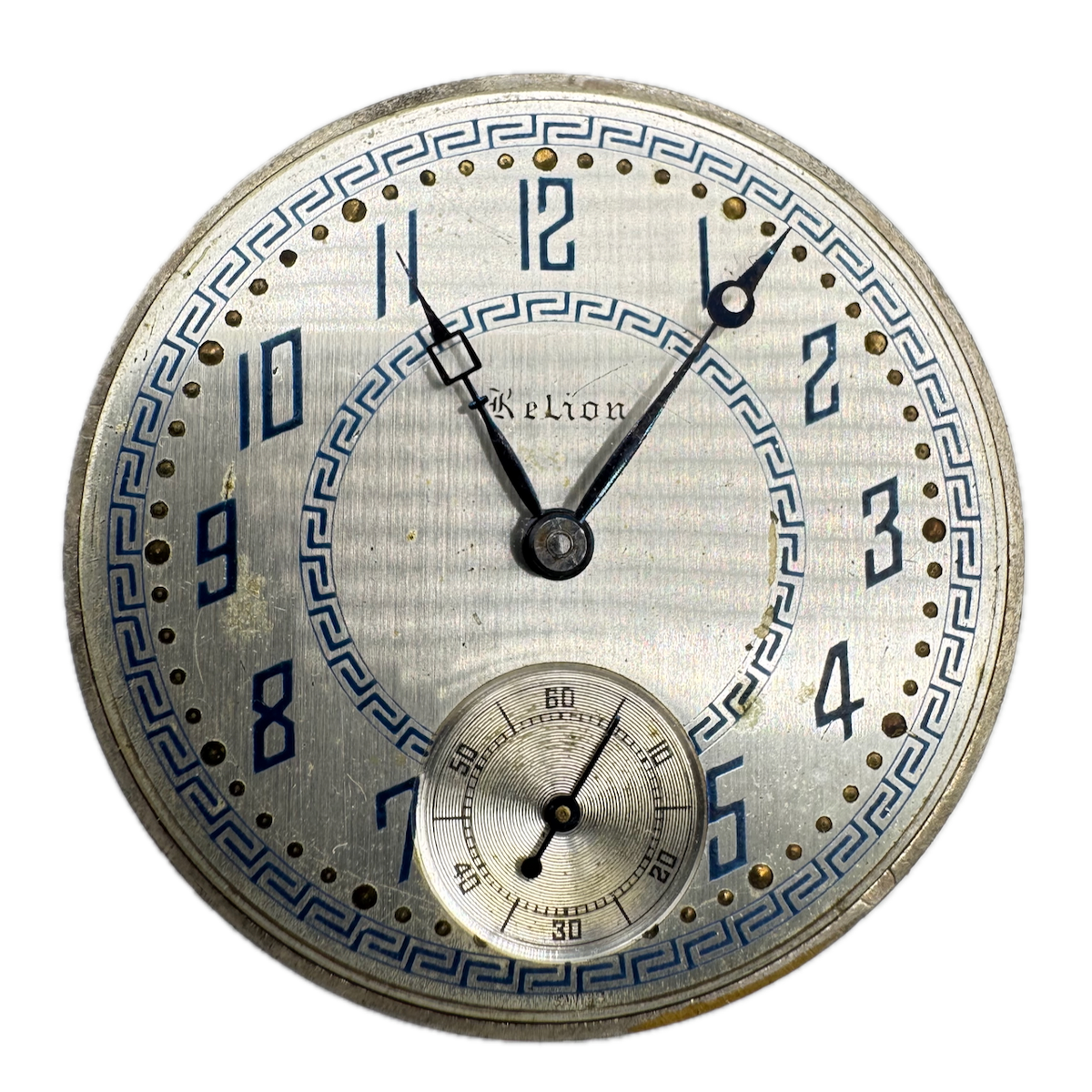 Antique 40mm Relion Blue Maze 6 Jewel Mechanical Pocket Watch Movement Swiss