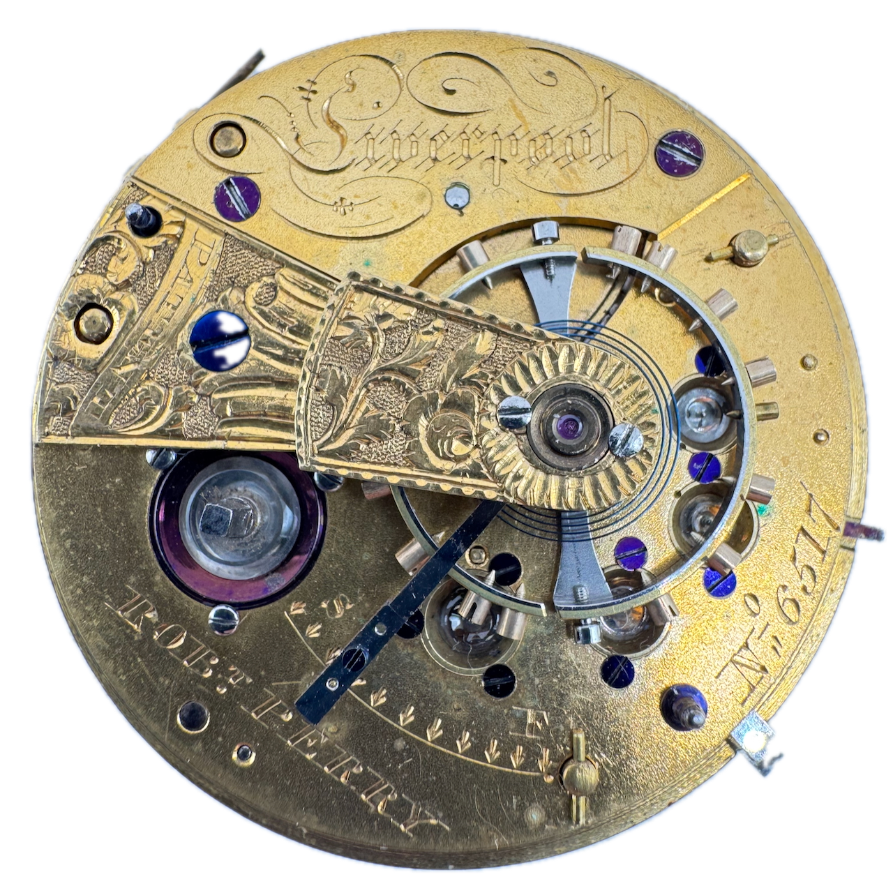 Antique 44.5mm Rob T. Perry Key Wind Fusee Pocket Watch Movement Liverpool