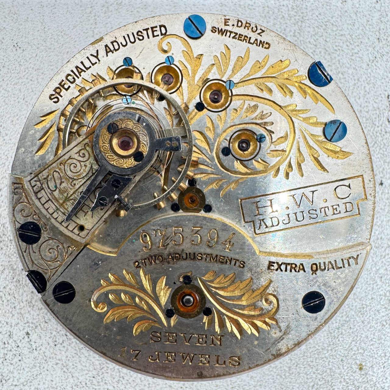 Antique 45.5mm H. W. C Fancy Blue Hunter Pocket Watch Movement Adjusted Swiss