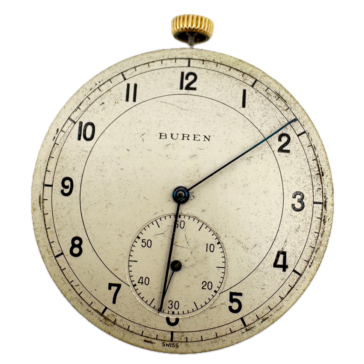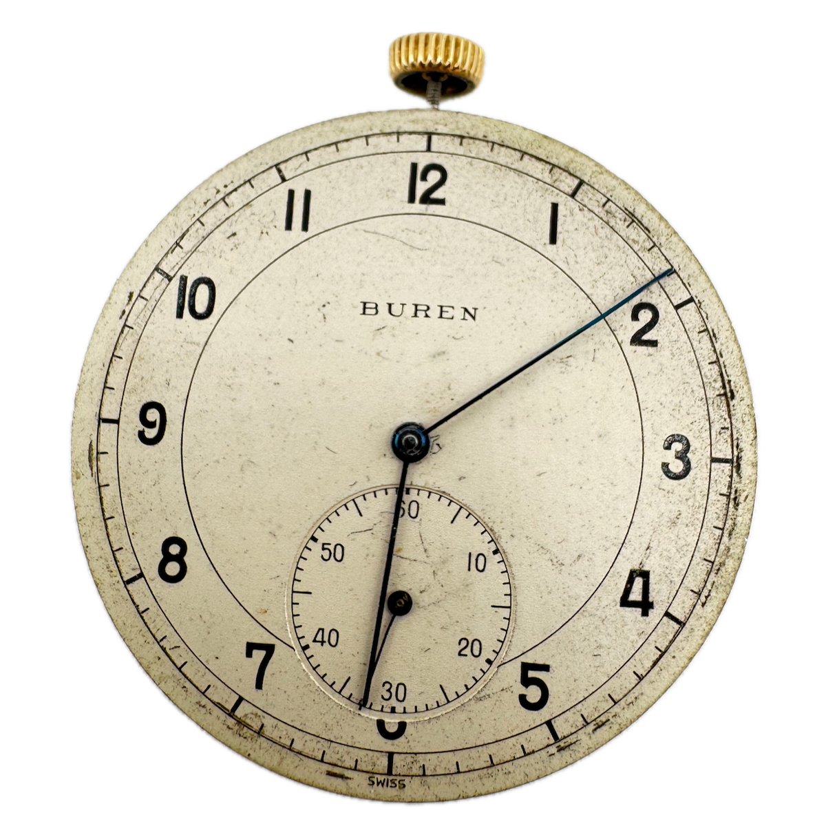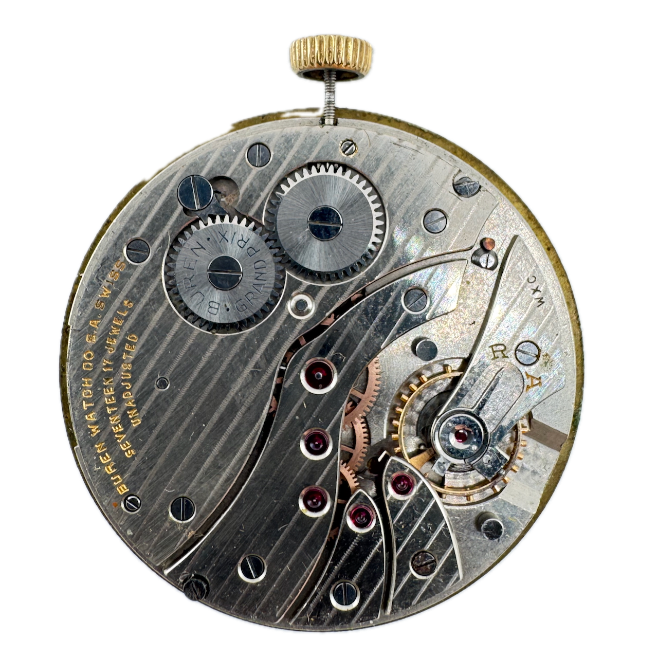Antique Buren Grand Prix 17 Jewel Mechanical Pocket Watch Movement Swiss Thin