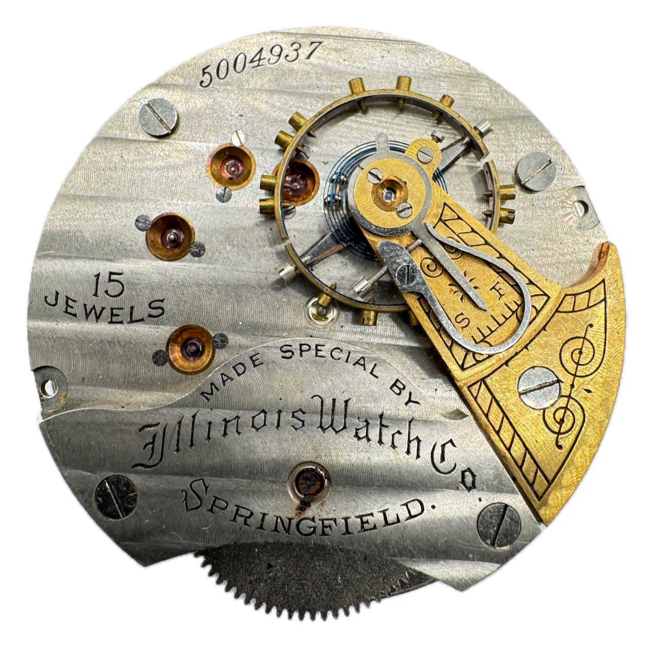 Vintage 18s 1928 Illinois 15 Jewel Mechanical Hunter Pocket Watch Movement 59