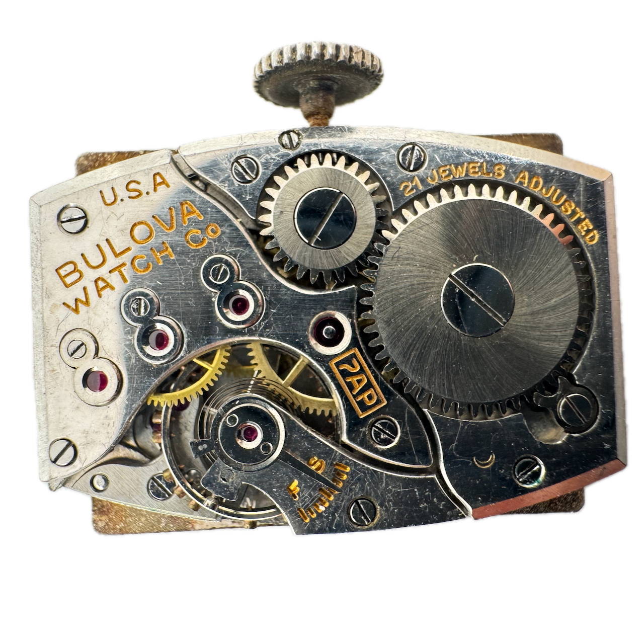 Vintage 19mm Bulova Rectangular Deco Mechanical Men's Wristwatch Movement 7 AP