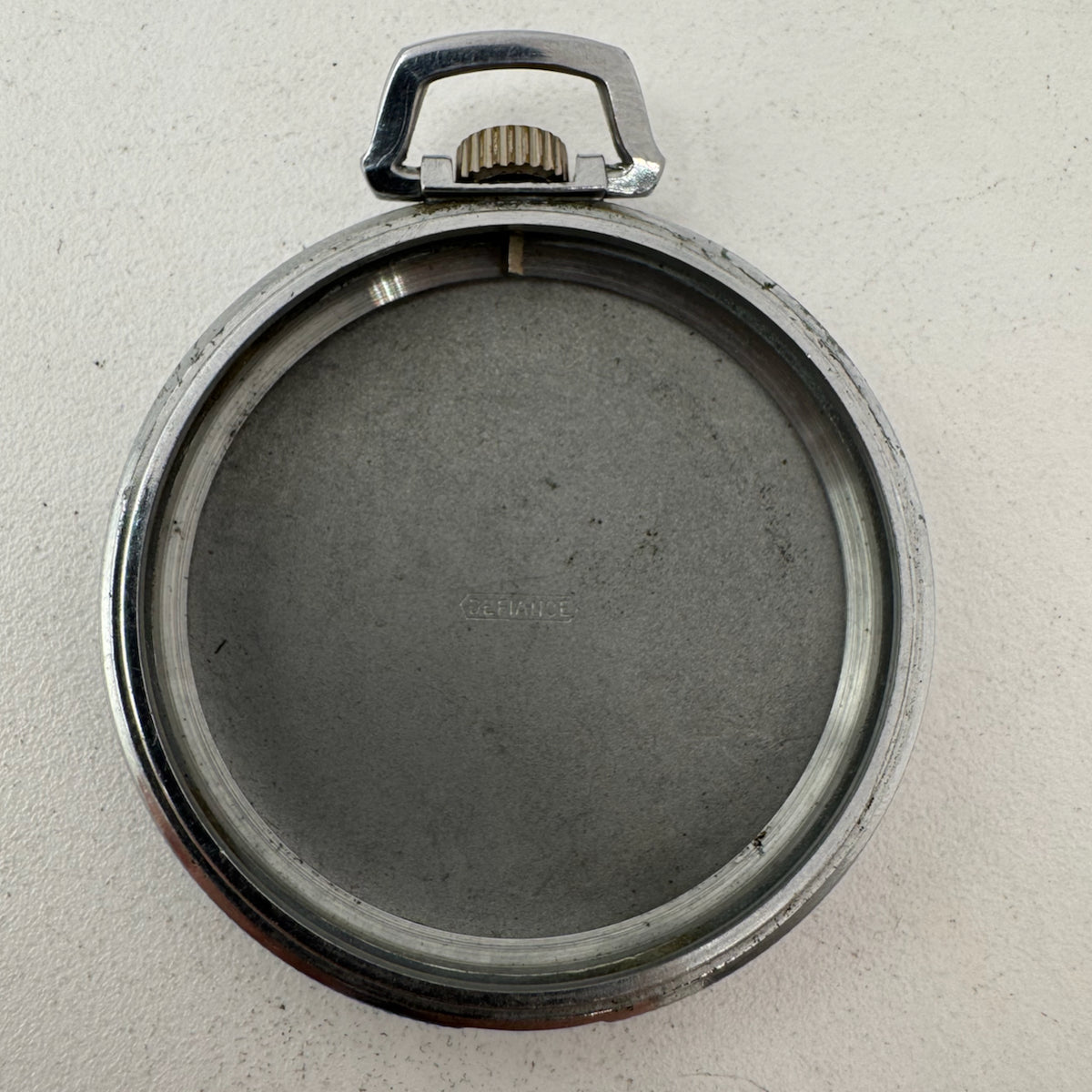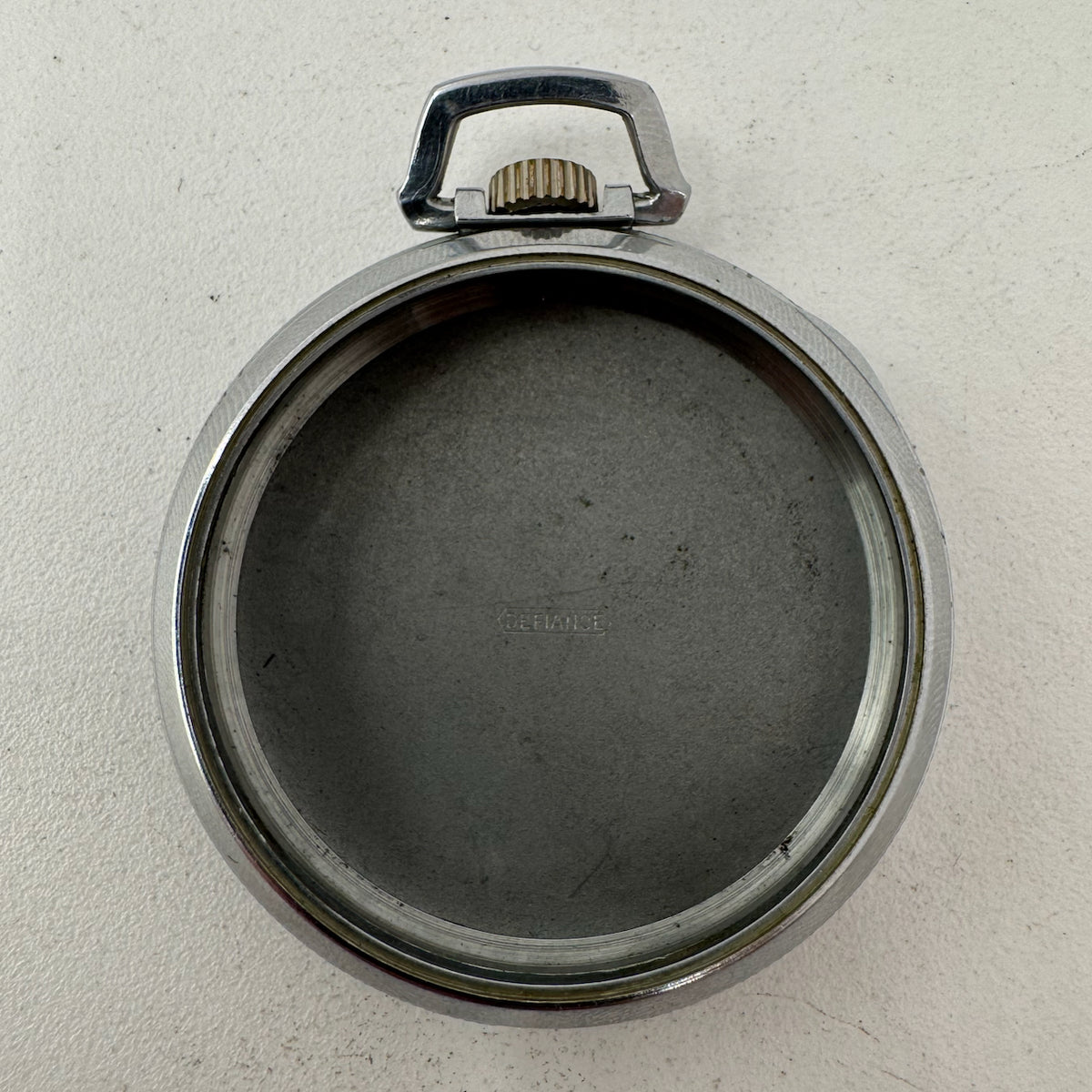 Antique 12 Size Defiance Open Face Pocket Watch Case Chrome Plated Striped USA