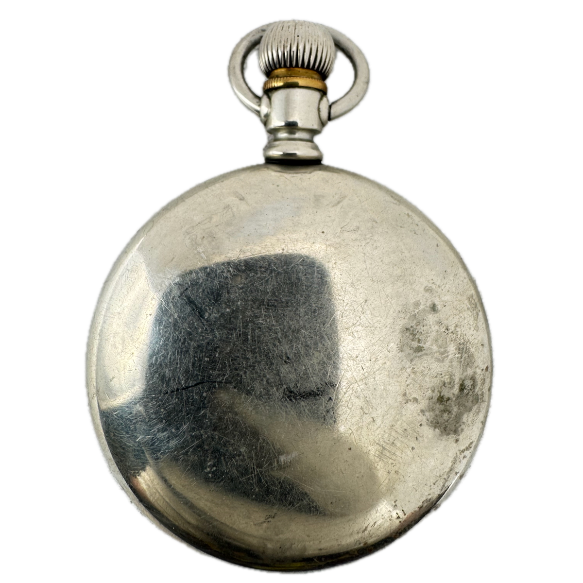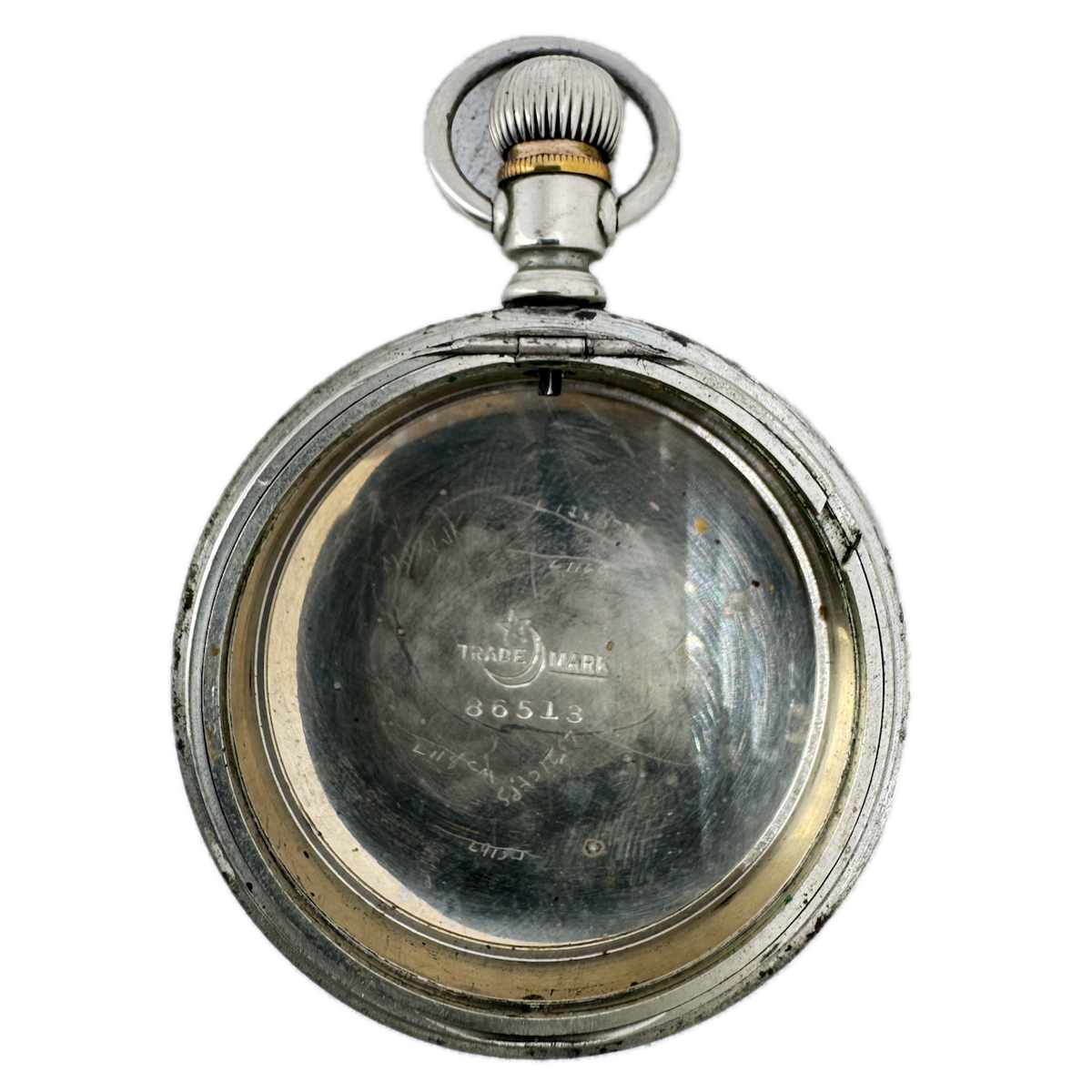 Antique 18 Size Crescent Swing Out Open Face Pocket Watch Case Nickel USA