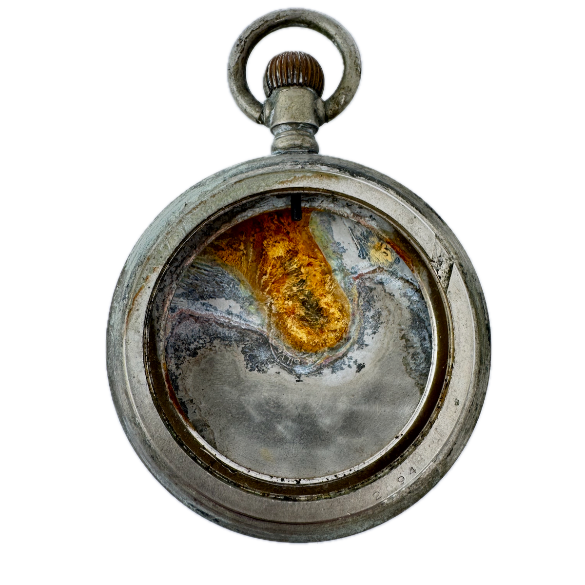Poor, overall condition for its age. There are scratches on the crystal. It has rust from a movement on the inside.