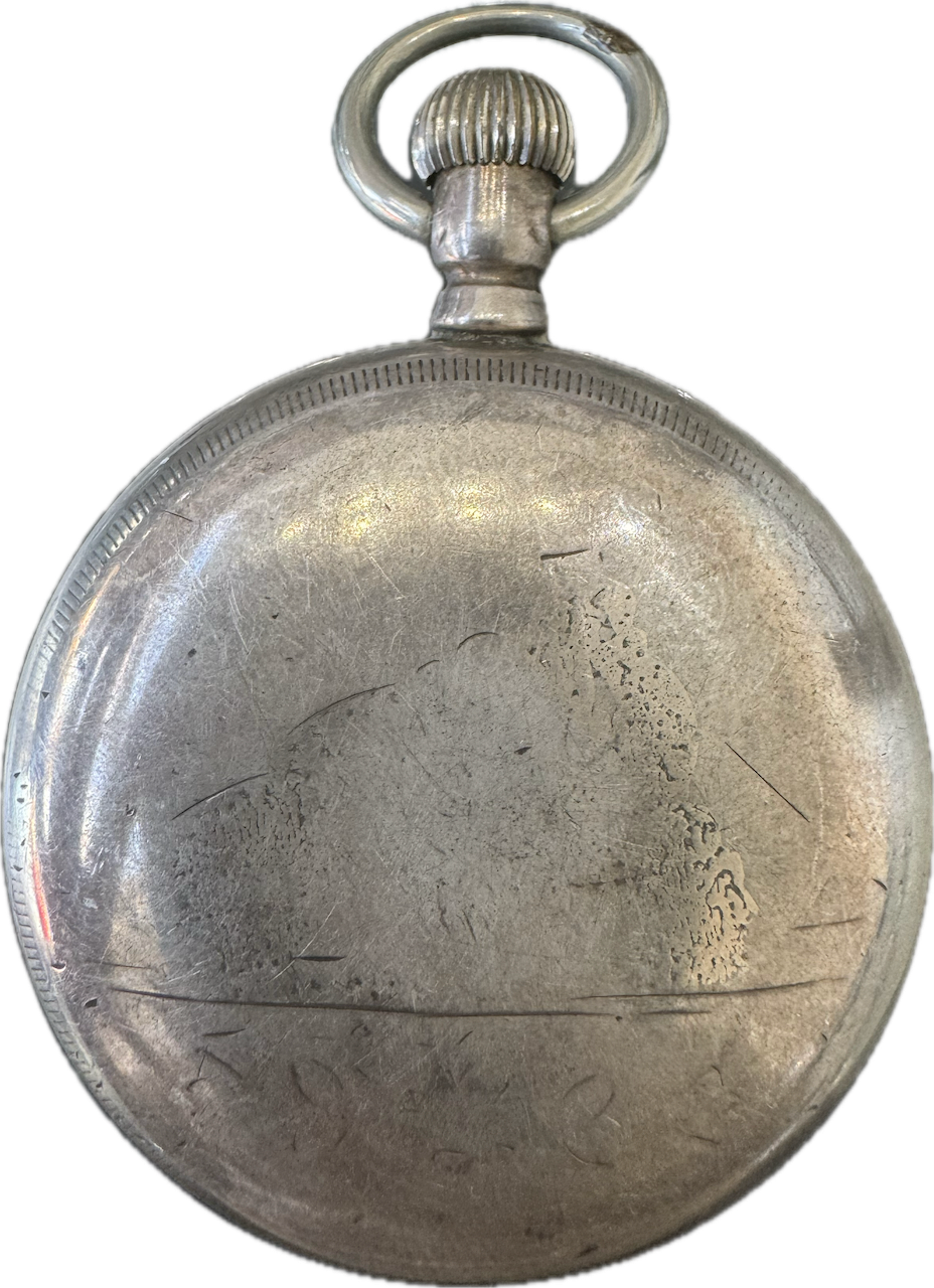 Antique 18s Illinois Open Face Pocket Watch Case Sterling SilverLocomotive USA