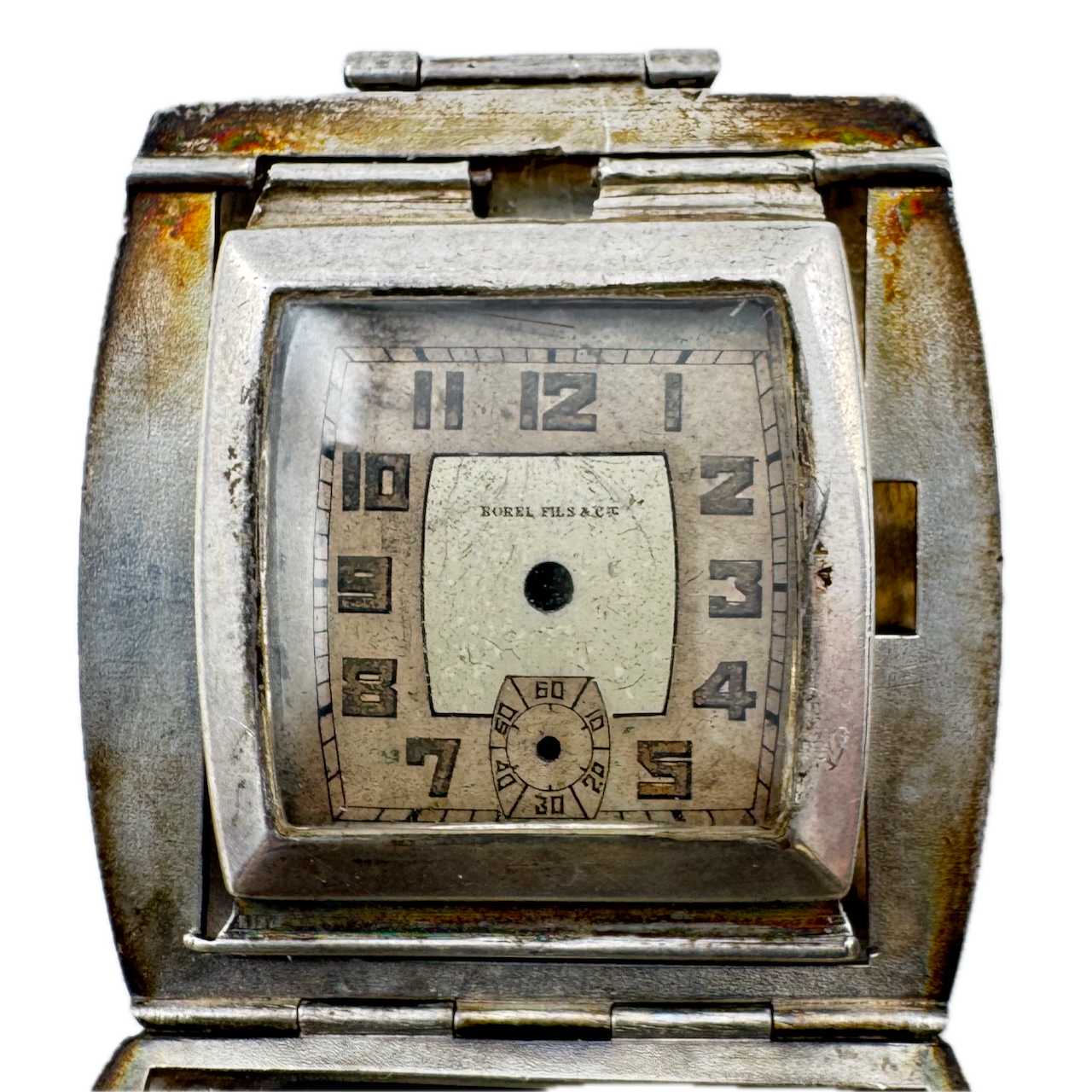 Antique Borel Fils Enameled Cushion Hunter Pocket Watch Case Sterling Silver