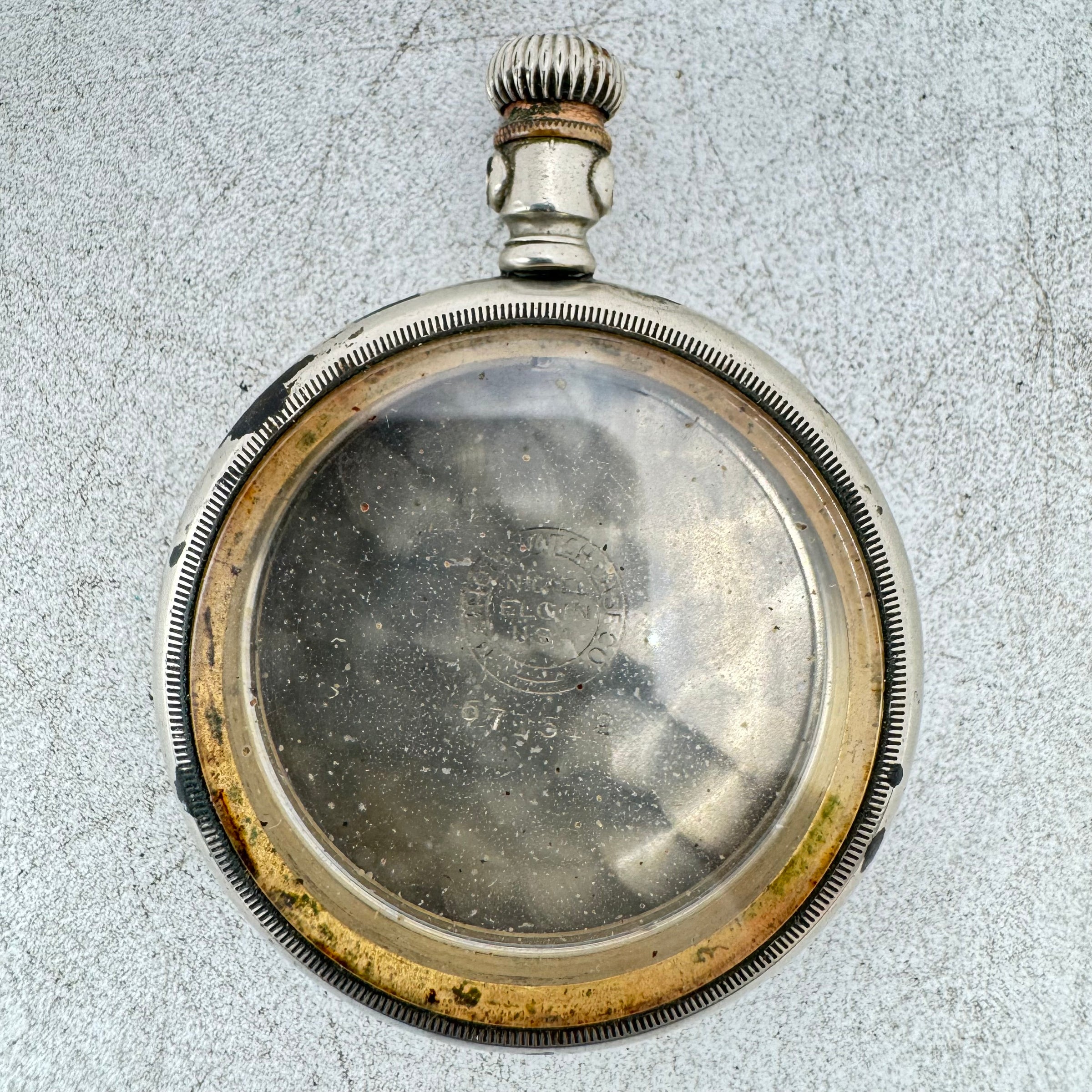 Antique 12s Illinois Pocket Watch Case Mechanical Nickel USA Coin Edge Swing Out