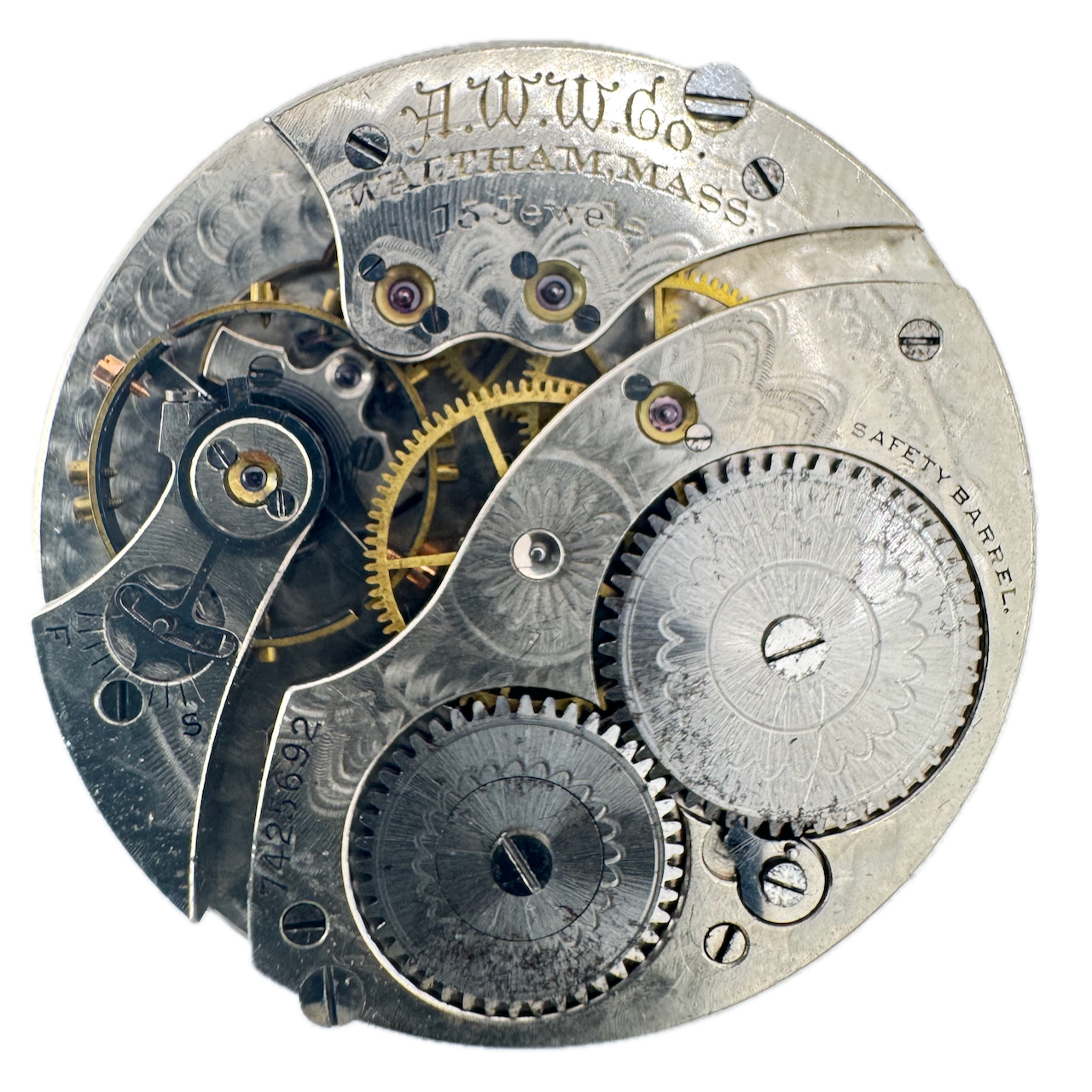 Antique 12s 1894 Waltham 15j Mechanical Pocket Watch Movement 220 USA
