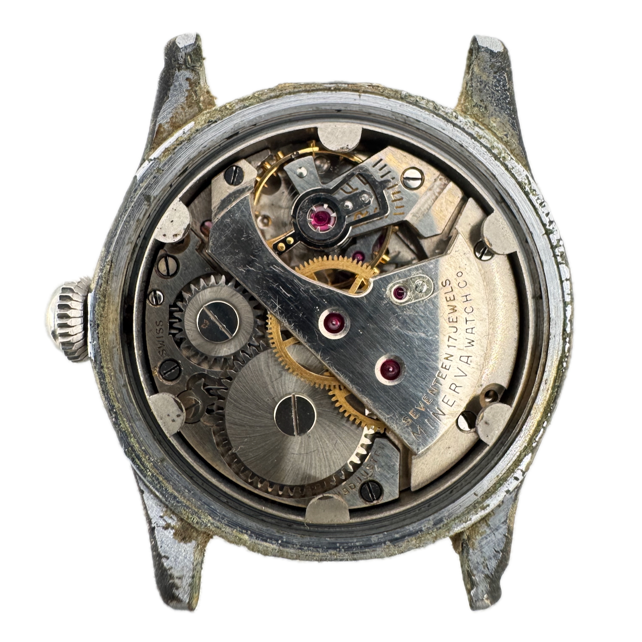 Vintage 29.5mm Minerva 17j Men's Mechanical Wristwatch Swiss Stainless Steel