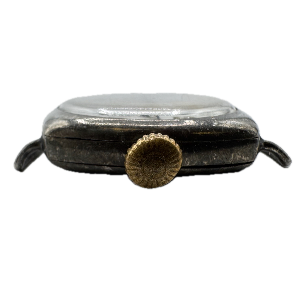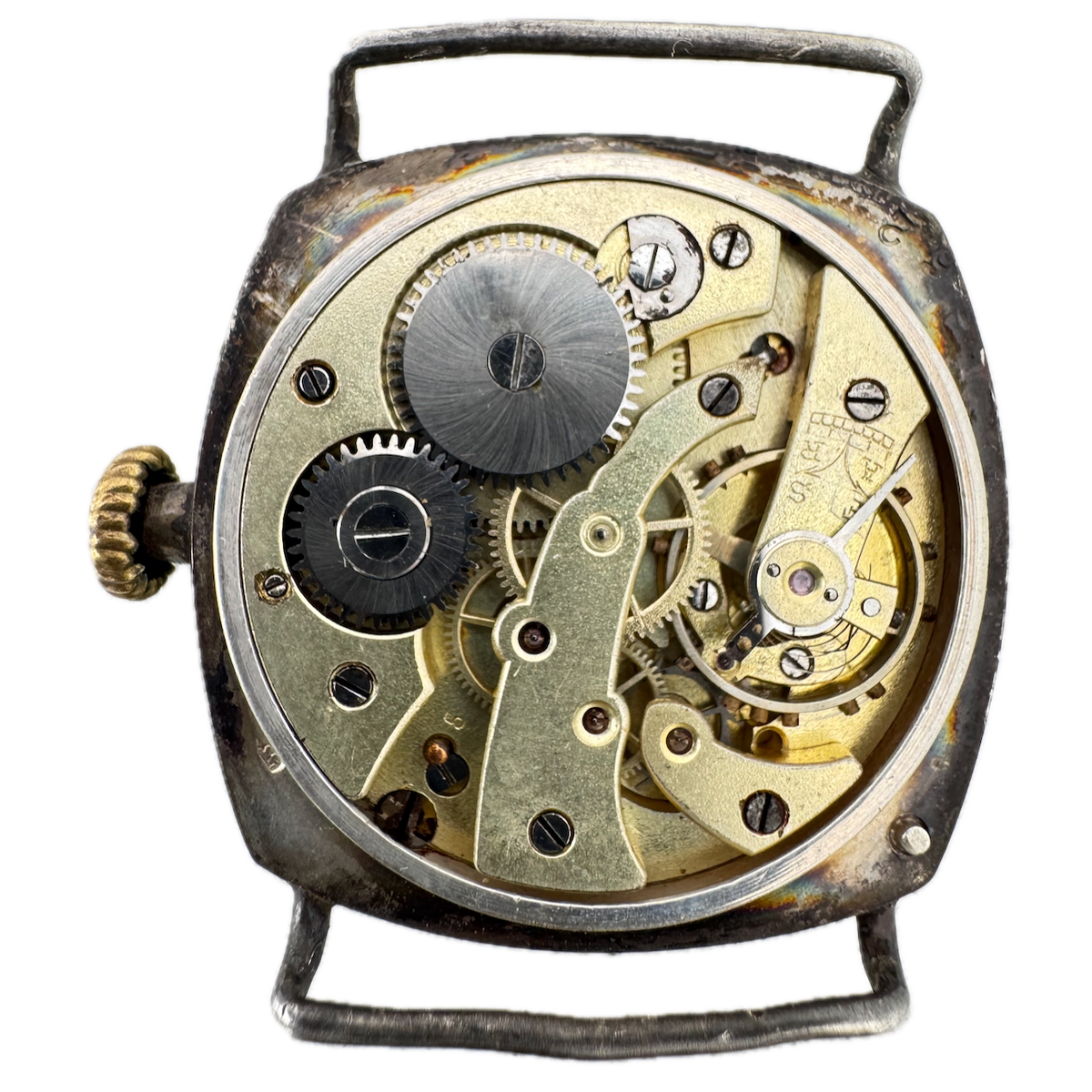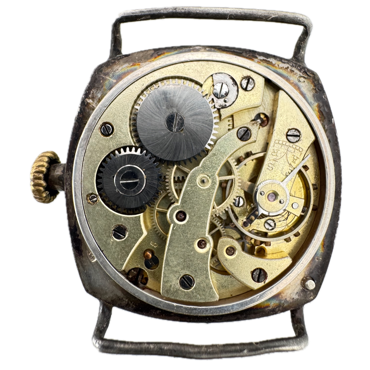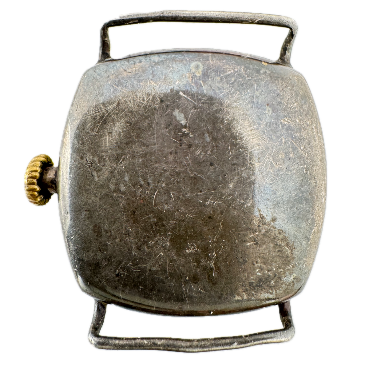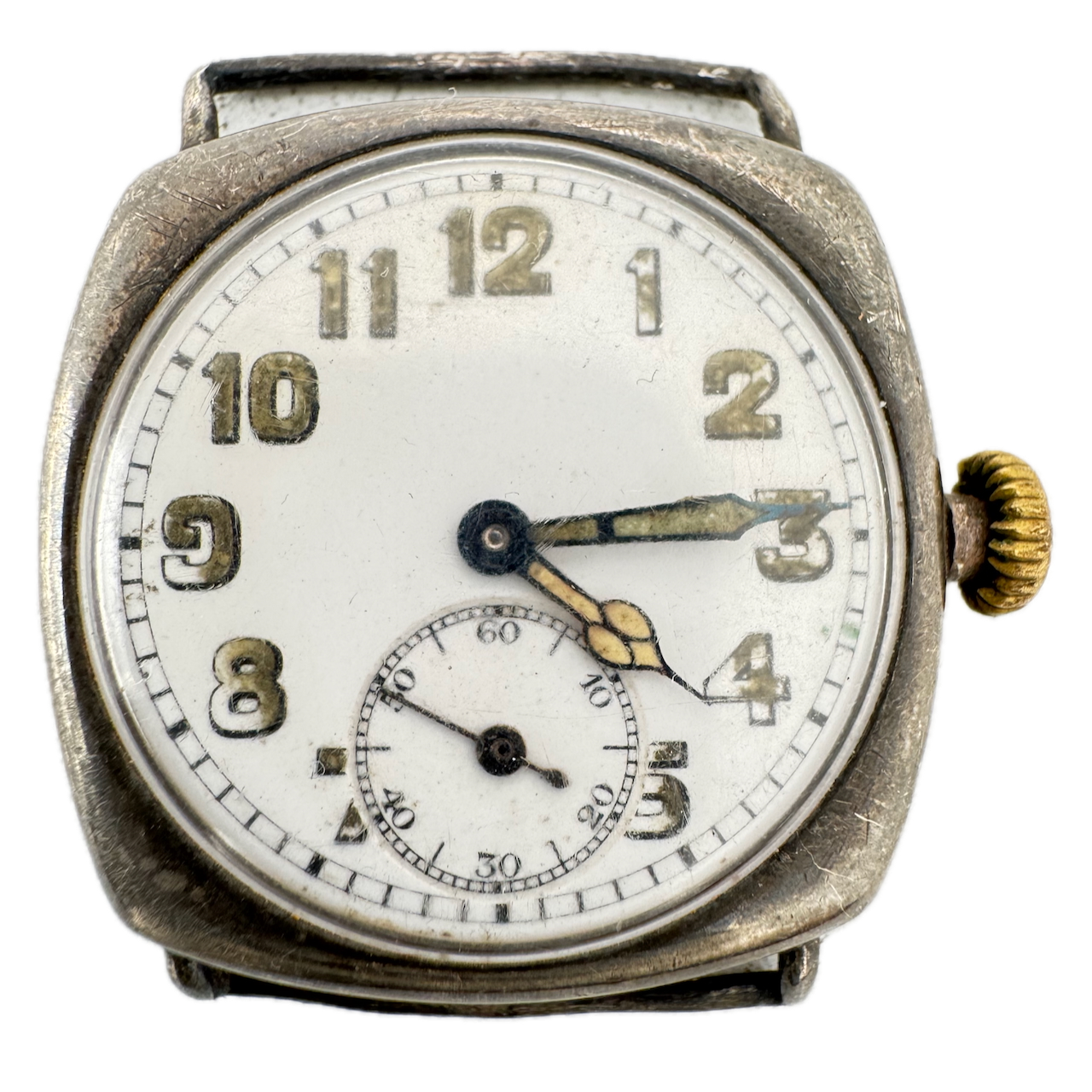 Vintage 33mm Cushion Case Wire Lug Men's Mechanical Wristwatch .900 Silver