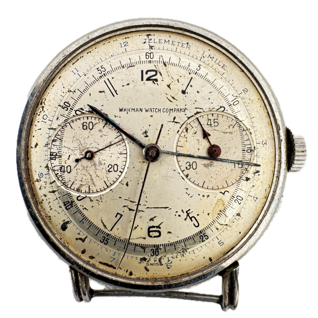 Vintage 35mm Wakmann Big Eye Men's Chronograph Wristwatch Valjoux Missing Lugs