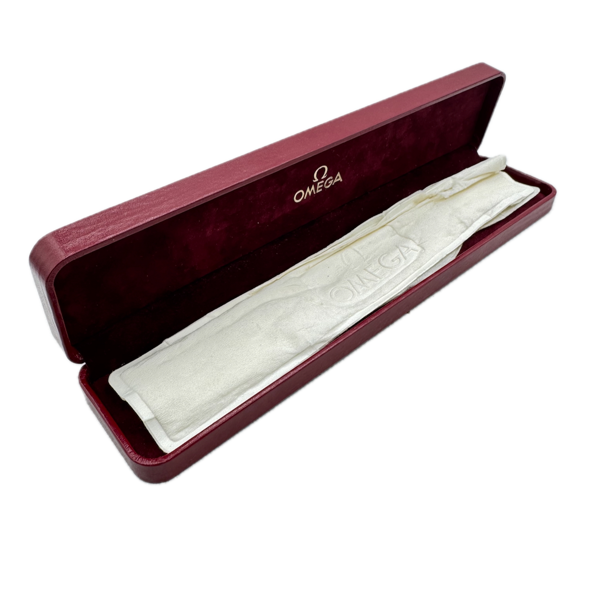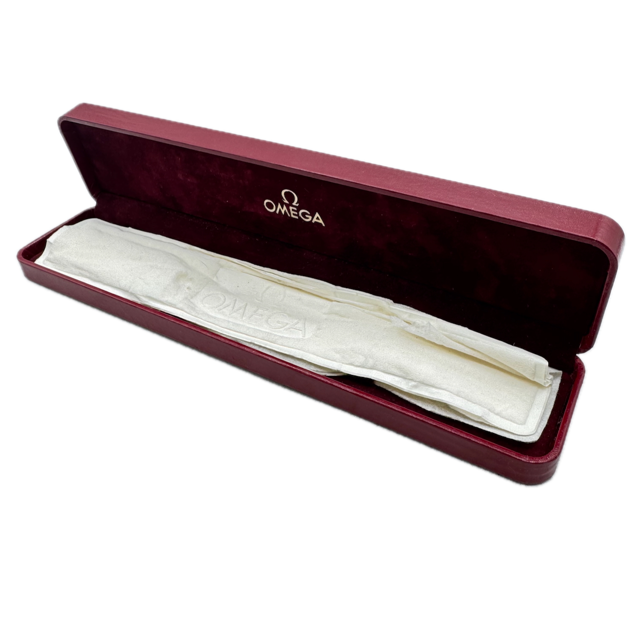 Vintage Omega Long Flat Display Men's Wristwatch Box Swiss Leather & Velvet Line