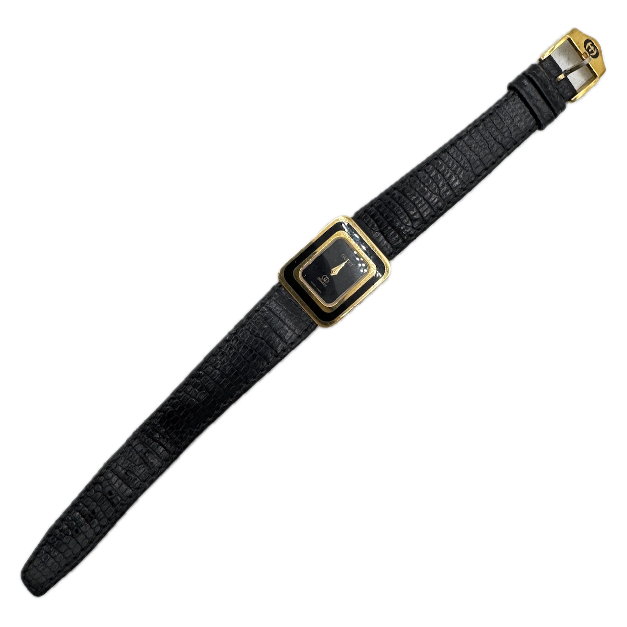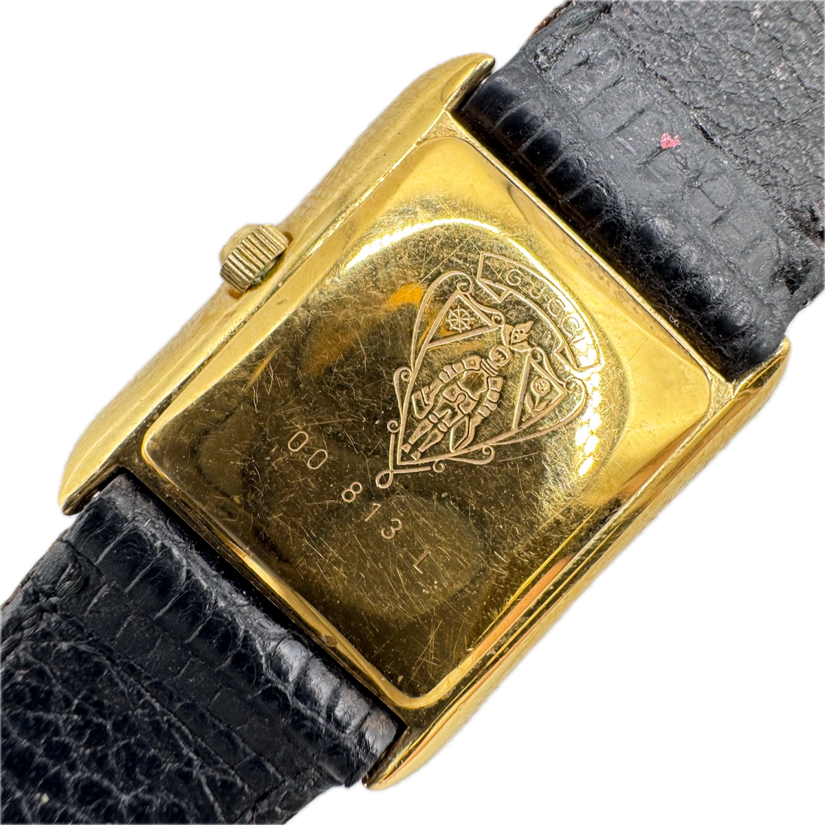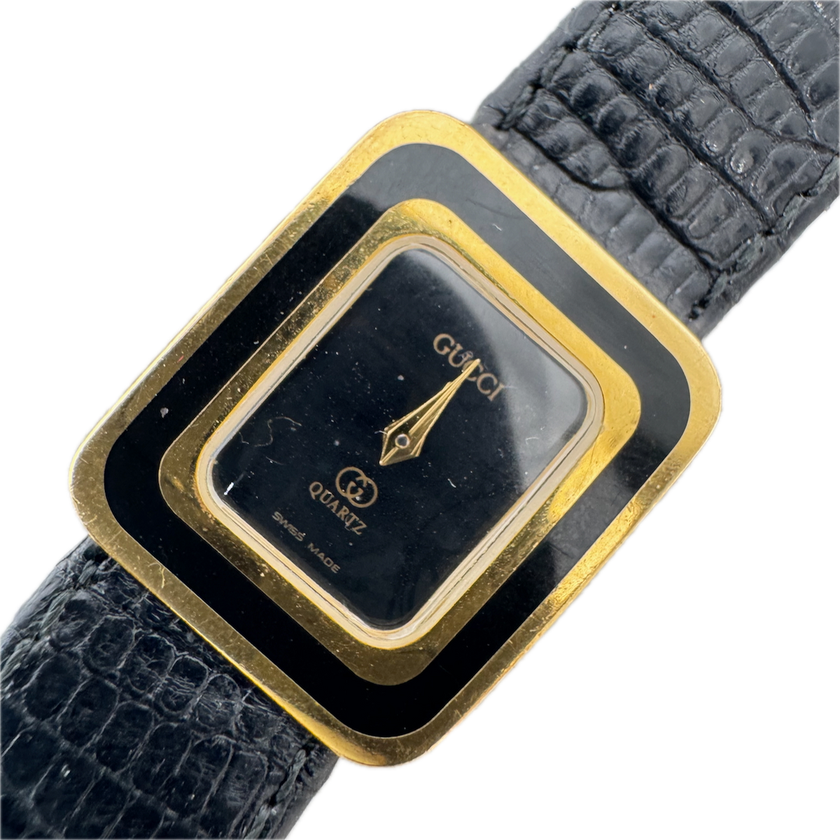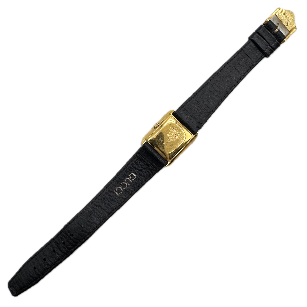 20.5mm Gucci 00.813L Black & Gold Ladies Quartz Wristwatch Swiss Gold Tone