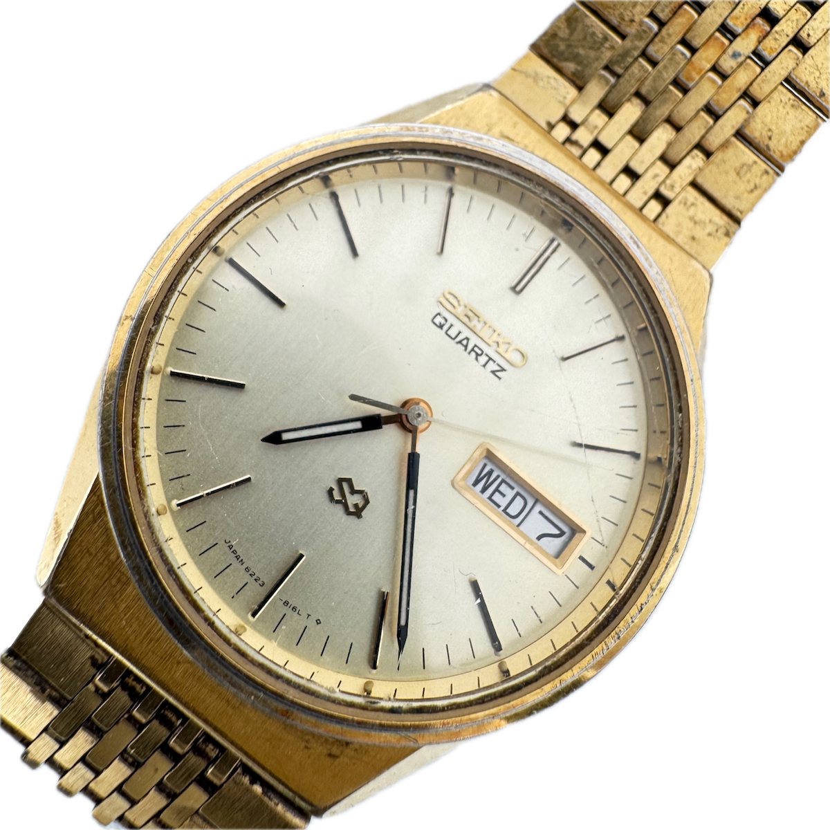 34.5mm Seiko 8223-8000 Day Date Men's Quartz Wristwatch 8223A Japan Gold Tone