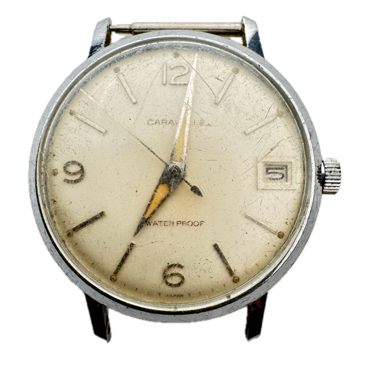 Vintage 1967 Caravelle Date Men's Mechanical Wristwatch Japan Steel & Chrome